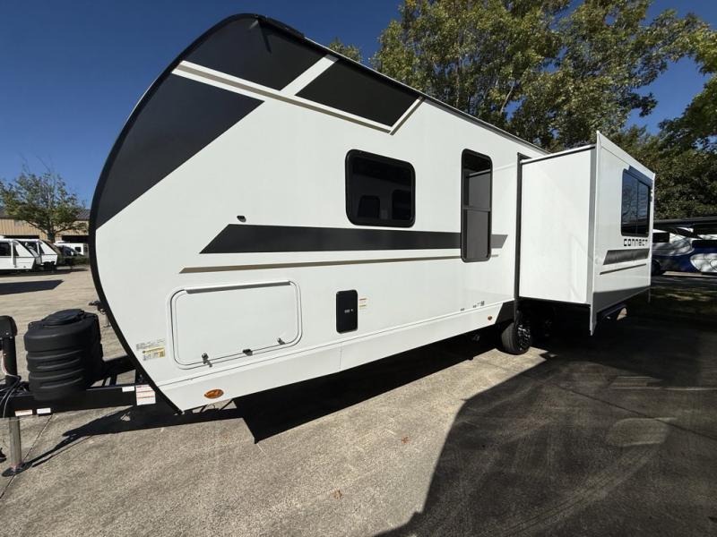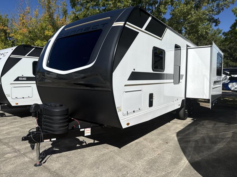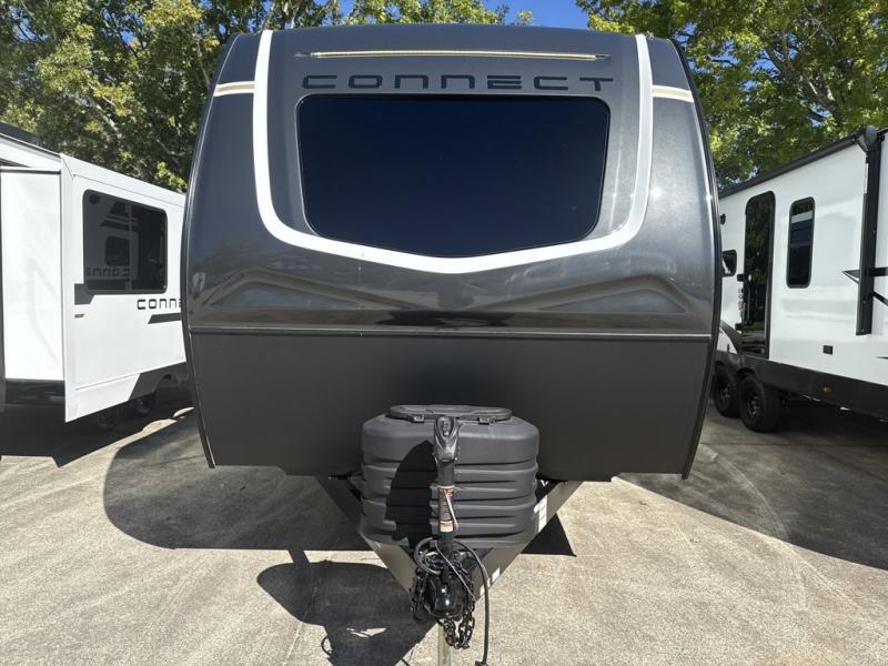 KZ Connect travel trailer C271RL highlights: Rear Dinette, King Bed, Full Bathroom, Fireplace, Swing Arm TV. This is the perfect couple's travel trailer! You will enjoy the added space in the living area because of the slide that holds the theater seating with USB charging ports to charge your phone while you recharge relaxing! Another convenient feature is the swing arm TV to adjust better to view your favorite show. You will be quite surprised to find a king-size bed in the front bedroom, along with dual closets with clothes rods to keep your things organized. A pass-through storage on the exterior allows you to bring along extra gear, and the interior is kept cozy on chilly fall evenings with the 34" fireplace. Enjoy some quality time even outdoors when traveling under the 20' awning with LED lights. The KZ Connect travel trailer comes with an RV Airflow System which optimizes the airflow for your air conditioner. This improves performance, speeds up cooling times, and reduces noise in your trailer. Some of the other helpful features found on the Connect are the heated, insulated, and enclosed underbelly, the exterior docking station, the fiberglass front cap with front windshield, the 82" interior ceiling height, and the protective front diamond plate. There are some useful technological features, like the two LED motion-sensor lights, the HDMI and USB charger. The KZ Engage is powered by OneControl, and it monitors battery levels and controls slide rooms, the leveling system, the awning, inside/outside lighting, and the TPMS prep.