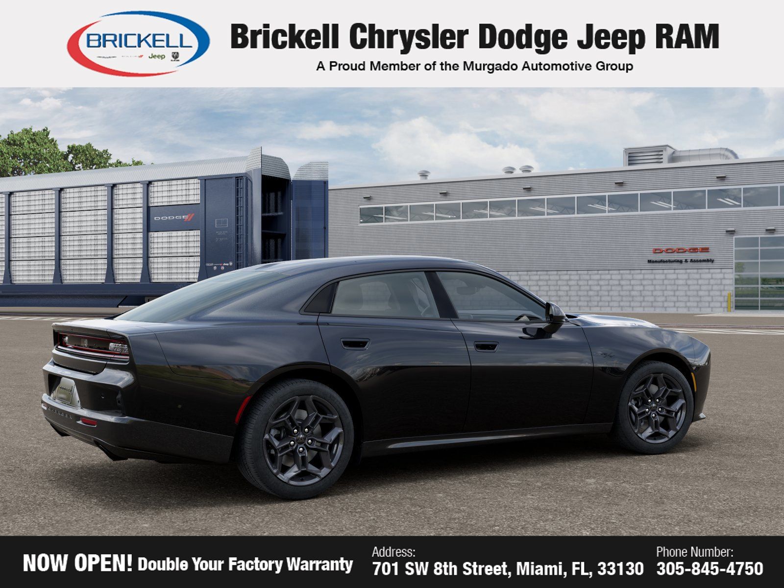 Discover Your Next Vehicle at Brickell Chrysler Dodge Jeep Ram Welcome to Brickell CDJR, where we go beyond selling cars. We double the factory powertrain warranty, giving you added peace of mind. Our dealership offers one of the largest new car inventories in the region, ensuring you find the right vehicle Prices displayed do not include our Perma-plate. Our state-of-the-art service department is the largest in the country and is open seven days a week from 7 AM to 9 PM. Visit us at 701 SW 8th St, Miami, FL 33130, or call 305-777-2800 to learn more and schedule a test drive. The displayed price includes an incentive for financing with Brickell CDJR Finance Company. Outside financing and bank drafts are not accepted. All pre-owned vehicle exports are subject to an export fee. Prices apply only to customers who live, work, or worship in Broward, Miami-Dade, Palm Beach, Monroe, Collier, Hendry, Lee, Glades, Martin, St. Lucie, Okeechobee, Manatee, Hillsborough, Osceola, or Orange County. Customers outside these counties will pay an additional $ Taxes, title, registration, and dealer fees apply. Factory MSRP: $55,285 Diamond Black Crystal Pearlcoat 2026 Dodge Charger R/T AWD 8-Speed Automatic 3.0L I6 Turbocharged DOHC 24V LEV3-ULEV70 420hp AWD, Black Cloth. Recent Arrival!