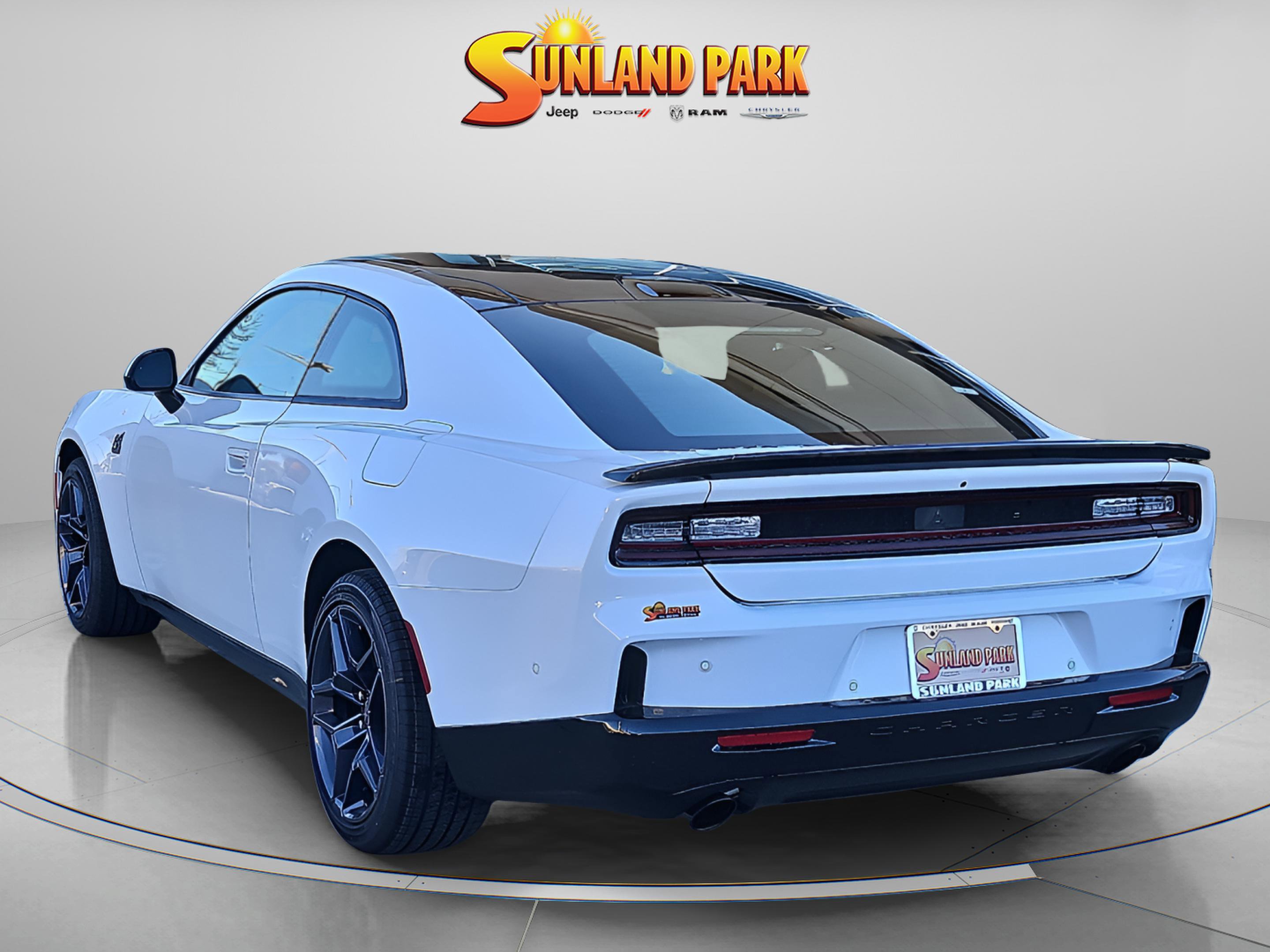 The 2026 Dodge Charger Scat Pack 2-Door AWD is a new vehicle with a twin turbocharged engine and a full-time automatic transmission. It features a two-tone paint scheme with a white and black exterior, and the interior is black. This new vehicle offers advanced features such as an all-wheel drive system, a premium sound system, and advanced safety technologies. The Charger is a large car with a large interior and a sporty bucket seat design. It is the best of both worlds – a large car with a sporty design.