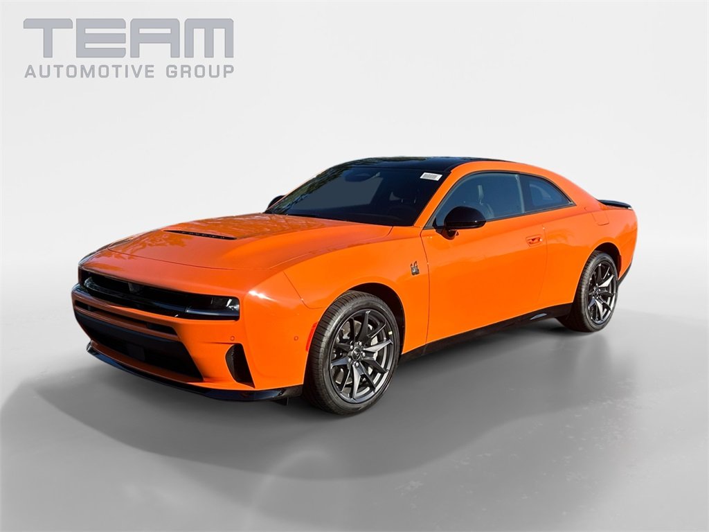 2026 Dodge Charger R/T Scat Pack Header Orange Clearcoat HO AWD. Check out all these great options. Blacktop Package (Dark Exterior Badging, Dual Rear Exhaust with Black Tips, and Wheels: 20" x 10" Dark Finish Aluminum), Quick Order Package 22P Scat Pack, Wheel and Tire Package, 10 Speakers, 2-Way Manual Adjust Front Head Restraints, 2-Way Power Driver Lumbar Adjust, 4-Wheel Disc Brakes, 4G LTE Wi-Fi Hot Spot, 8-Way Power Driver Seat Adjust, ABS brakes, Active Noise Control System, Air Conditioning, Alloy wheels, AM/FM radio: SiriusXM w/360L, Apple CarPlay/Android Auto, Auto-dimming Rear-View mirror, Automatic temperature control, Black Seats, Brake assist, Bumpers: body-color, Compass, Connectivity - US/Canada, Delay-off headlights, Disassociated Touchscreen Display, Driver door bin, Driver vanity mirror, Dual front impact airbags, Dual front side impact airbags, Electronic Stability Control, Emergency communication system: Dodge Connect, Four wheel independent suspension, Front anti-roll bar, Front Bucket Seats, Front Center Armrest, Front dual zone A/C, Front License Plate Bracket, Front reading lights, Fully automatic headlights.