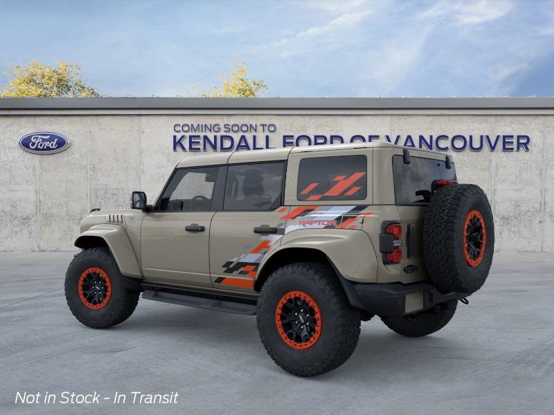 Desert Sand 2026 Ford Bronco Raptor 4WD 10-Speed Automatic 3.0L EcoBoost V6. Final Price displayed includes Factory Rebates/Incentives and Kendall Discount that all customers qualify for. Factory Rebates and Incentives are subject to change and may depend on location of buyer’s residence. Final Price listed does not include taxes, title, or license. A negotiable documentary service fee of up to $200 may be added to the sale price of the vehicle. While every reasonable effort is made to ensure the accuracy of the vehicle description displayed on this page, dealer makes no warranties, express or implied, with regard to the vehicle or vehicle description. All vehicles are subject to prior sale. Please verify all vehicle information before entering into a purchase agreement. If the vehicle being purchased is to be financed, the annual percentage rate may be negotiated with the dealer.
