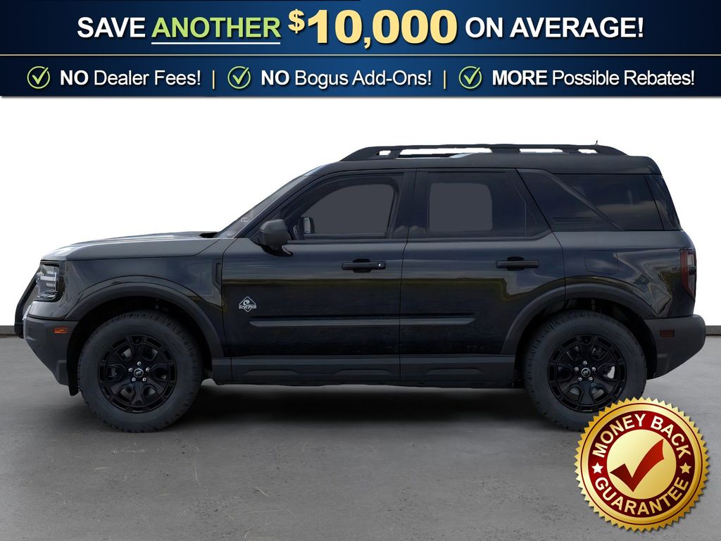 Shadow Black 2026 Ford Bronco Sport Outer Banks NFT 4WD 8-Speed Automatic 1.5L EcoBoost 12.3" Cluster Display, 2 Rear D-Ring Recovery Hooks, 2nd Row Carpeted Seatback, 360-Degree Camera with Trail View, 4-Wheel Disc Brakes, 400W Pro Power Onboard, 6 Speakers, ABS brakes, Air Conditioning, Alloy wheels, AM/FM radio: SiriusXM with 360L, AM/FM Stereo, Apple CarPlay/Android Auto, Auto High-beam Headlights, Auto-dimming Rear-View mirror, Automatic temperature control, Auxiliary Switches and Wiring, Brake assist, Class II Trailer Tow Package with Trailer Sway Control, Compass, Connected Navigation (1-Year Included), Delay-off headlights, Driver door bin, Driver vanity mirror, Dual front impact airbags, Dual front side impact airbags, Electronic Stability Control, Emergency communication system: SYNC 4 911 Assist, Exterior Parking Camera Rear, Ford Connectivity Package (1-Year Included), Four wheel independent suspension, Front and Rear Black Bumpers with Steel Plates, Front anti-roll bar, Front Brush Guard with Integrated Recovery Hooks, Front Bucket Seats, Front Center Armrest, Front Driver/Passenger Seat Back Map Pockets, Front dual zone A/C, Front fog lights, Front License Plate Bracket, Front Parking Sensors, Front reading lights, Fully automatic headlights, Heated door mirrors, Heated front seats, Heated steering wheel, High Clearance Fender Flares, HOSS 2.0 Off-Road Suspension, Illuminated entry, Internet access capable: 5G Modem - Ford Connectivity Package, Knee airbag, Low tire pressure warning, Memory seat, Occupant sensing airbag, Outer Banks Tech Package+, Outside temperature display, Overhead airbag, Overhead console, Panic alarm, Passenger door bin, Passenger vanity mirror, Power door mirrors, Power driver seat, Power Moonroof, Power passenger seat, Power steering, Power windows, Radio data system, Radio: HD w/B&O Sound System by Bang & Olufsen, Rear anti-roll bar, Rear Parking Sensors, Rear reading lights, Rear seat center armrest, Rear window defroster, Rear window wiper, Remote keyless entry, Reverse Brake Assist, Rubberized Flooring, Sasquatch Outer Banks Package, Security system, SiriusXM with 360L, Speed control, Speed-sensing steering, Speed-Sensitive Wipers, Split folding rear seat, Steering wheel mounted audio controls, SYNC 4 with Enhanced Voice Recognition, Tachometer, Telescoping steering wheel, Tilt steering wheel, Traction control, Trail Control with Trail One-Pedal Drive.