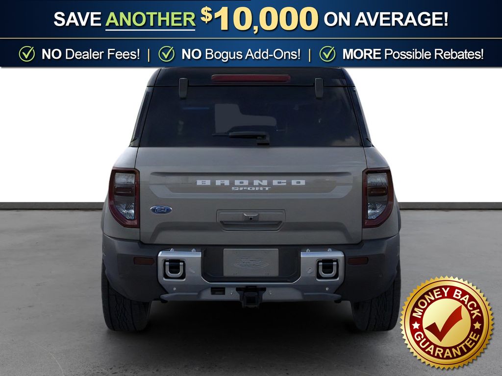 Dealer Discount of $1,632 off MSRP Carbonized Gray Metallic 2026 Ford Bronco Sport Outer Banks NFT 4WD 8-Speed Automatic 1.5L EcoBoost 12.3" Cluster Display, 2 Rear D-Ring Recovery Hooks, 2nd Row Carpeted Seatback, 360-Degree Camera with Trail View, 4-Wheel Disc Brakes, 400W Pro Power Onboard, 6 Speakers, ABS brakes, Air Conditioning, Alloy wheels, AM/FM radio: SiriusXM with 360L, AM/FM Stereo, Apple CarPlay/Android Auto, Auto High-beam Headlights, Auto-dimming Rear-View mirror, Automatic temperature control, Auxiliary Switches and Wiring, Brake assist, Class II Trailer Tow Package with Trailer Sway Control, Compass, Connected Navigation (1-Year Included), Delay-off headlights, Driver door bin, Driver vanity mirror, Dual front impact airbags, Dual front side impact airbags, Electronic Stability Control, Emergency communication system: SYNC 4 911 Assist, Exterior Parking Camera Rear, Ford Connectivity Package (1-Year Included), Four wheel independent suspension, Front and Rear Black Bumpers with Steel Plates, Front anti-roll bar, Front Brush Guard with Integrated Recovery Hooks, Front Bucket Seats, Front Center Armrest, Front Driver/Passenger Seat Back Map Pockets, Front dual zone A/C, Front fog lights, Front License Plate Bracket, Front Parking Sensors, Front reading lights, Fully automatic headlights, Heated door mirrors, Heated front seats, Heated steering wheel, High Clearance Fender Flares, HOSS 2.0 Off-Road Suspension, Illuminated entry, Internet access capable: 5G Modem - Ford Connectivity Package, Knee airbag, Low tire pressure warning, Memory seat, Occupant sensing airbag, Outer Banks Tech Package+, Outside temperature display, Overhead airbag, Overhead console, Panic alarm, Passenger door bin, Passenger vanity mirror, Power door mirrors, Power driver seat, Power Moonroof, Power passenger seat, Power steering, Power windows, Radio data system, Radio: HD w/B&O Sound System by Bang & Olufsen, Rear anti-roll bar, Rear Parking Sensors, Rear reading lights, Rear seat center armrest, Rear window defroster, Rear window wiper, Remote keyless entry.