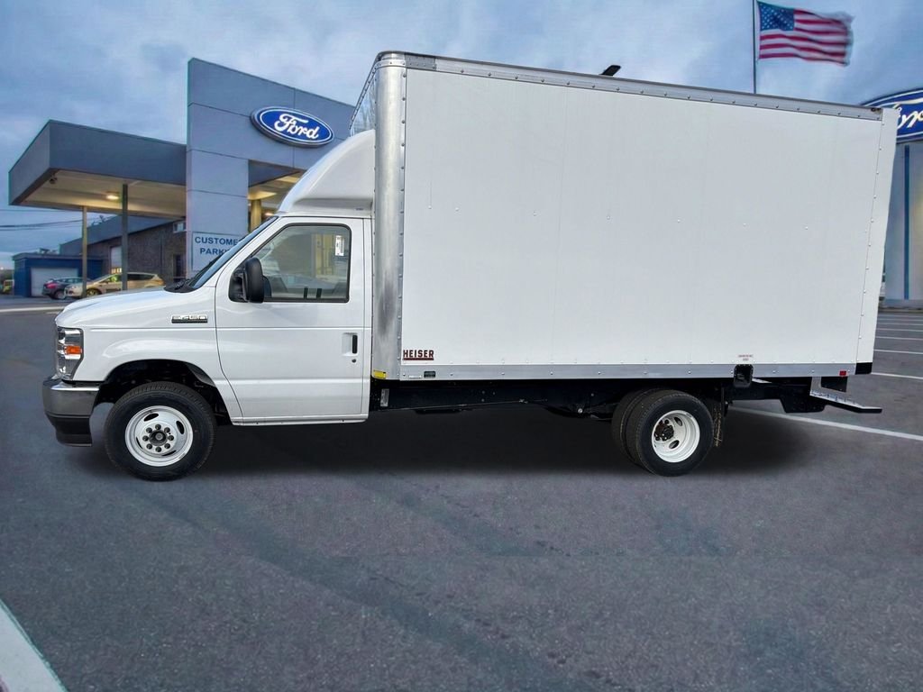 Built to handle serious commercial workloads across Washington State, this 2026 Ford E 450 Cutaway DRW is a purpose built solution for contractors, municipal fleets, and delivery operators who need durability, payload, and long term reliability. Powered by the proven 7.3L V8 Premium Rated Gas Engine paired with a 6 speed automatic with Tow Haul, this chassis is engineered for heavy upfits and demanding routes from Kent to Seattle and Tacoma. This unit is equipped with the 782A Preferred Equipment Package and rides on a 158 inch wheelbase with a 14500 pound GVWR package. The 4.56 limited slip rear axle enhances traction and launch performance, especially valuable when operating on wet job sites, steep grades, or navigating hilly neighborhoods around Bellevue and Renton. Upfitted by Geo Heiser Body Co in Seattle, this 14 foot DuraPlate cargo body transforms the E 450 into a high capacity mobile workspace. Built with steel long sills, steel channel cross sills on 16 inch centers, and a hardwood plywood floor with floor hardener, this body is ready for heavy equipment, palletized cargo, or municipal supplies. This configuration is ideal for HVAC contractors, electrical fleets, last mile delivery operators, and public works departments needing enclosed, weather protected cargo capacity. The tall interior height allows technicians to stand and move efficiently, while the DuraPlate construction resists dents and corrosion in our Pacific Northwest climate.