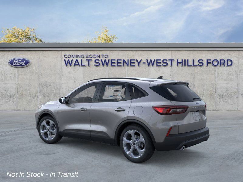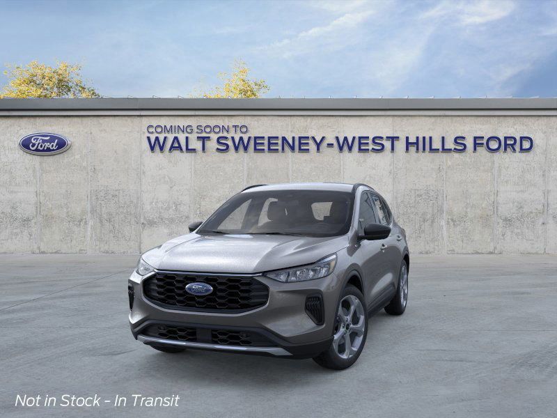 The 2026 Ford Escape ST-Line SUV in Carbonized Gray Metallic is in transit to Walt Sweeney Ford. The vehicle features an Ebony interior with Red Stitching, an 8-Speed Automatic transmission, and All-Wheel Drive. This new Escape is equipped with a Cold Weather Package, Heated Front Row Seats, Heated Sideview Mirrors, Remote Starter System, and a Heated Steering Wheel. The Escape is powered by a 1.5L EcoBoost Engine with Auto Start-Stop Technology and offers dual zone automatic climate control, sport tuned suspension, and a range of advanced safety features.