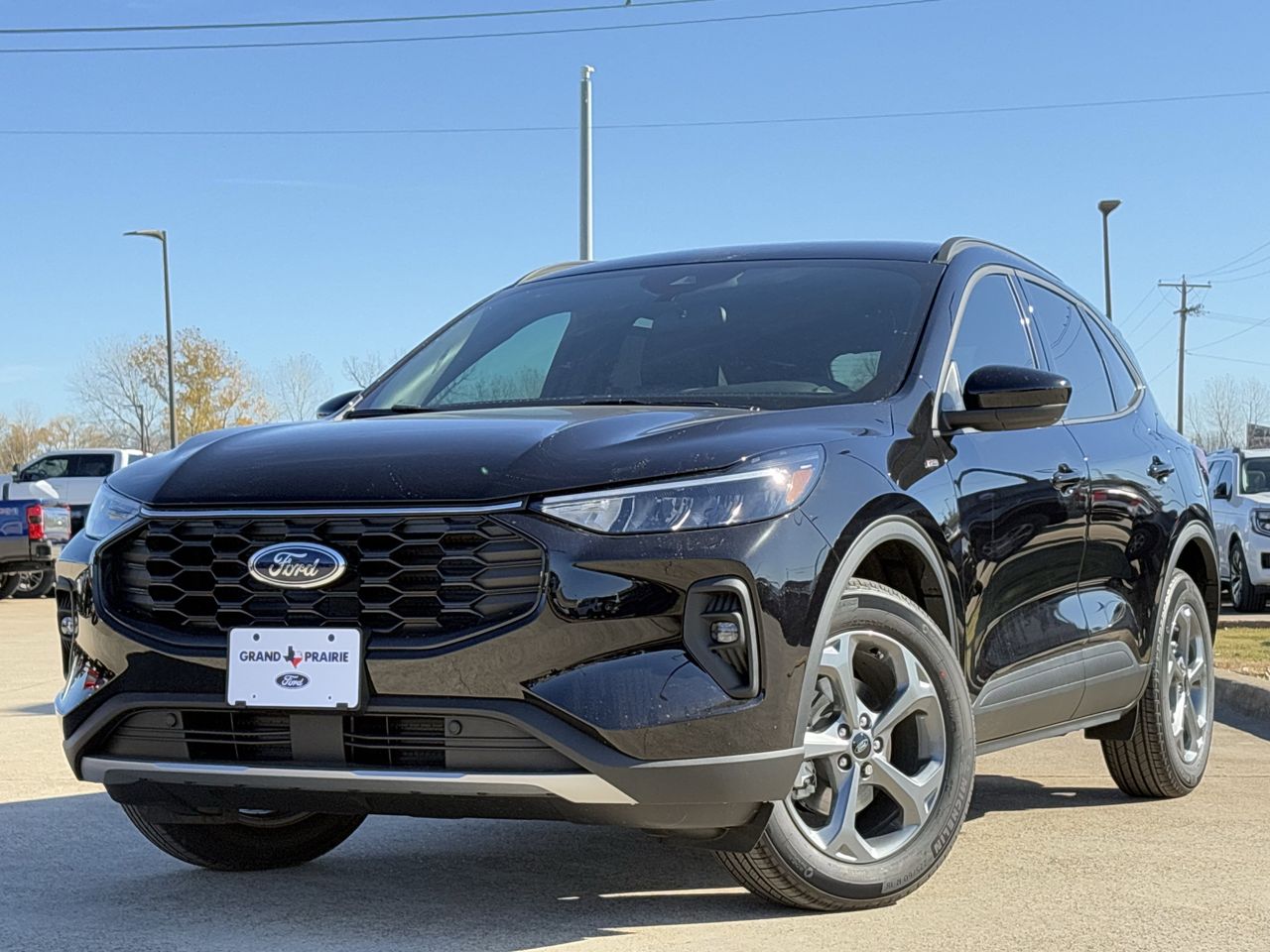 Recent Arrival! Black Metallic 2026 Ford Escape Hybrid ST-Line Select AWD 2.5L iVCT. In Transit at Grand Prairie Ford.