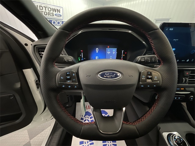 We are Open and Delivering vehicles Daily! Star White Metallic Tri-Coat 2026 Ford Escape Hybrid ST-Line Select AWD eCVT 2.5L iVCT 2.5L iVCT, 10-Way Power Driver's Seat w/Memory, 2.91 Axle Ratio, 4-Way Manual Front Passenger Seat, 4-Wheel Disc Brakes, 6 Speakers, 8-Way Power Driver Seat, ABS brakes, Adaptive Cruise Control with Stop-and-Go, Air Conditioning, Alloy wheels, AM/FM radio: SiriusXM 360L, Auto High-beam Headlights, Automatic temperature control, Brake assist, Bumpers: body-color, Class II Trailer Tow Package, Compass, Connected Navigation (1-Year Included), Delay-off headlights, Digital Rear View Camera, Driver door bin, Driver vanity mirror, Dual front impact airbags, Dual front side impact airbags, Electronic Fuel Door Release, Electronic Stability Control, Emergency communication system: SYNC 4 911 Assist, Equipment Group 400A, Evasive Steering Assist, Ford App, Ford Co-Pilot360 Assist+, Four wheel independent suspension, Front anti-roll bar, Front Bucket Seats, Front Center Armrest, Front dual zone A/C, Front fog lights, Front License Plate Bracket, Front reading lights, Fully automatic headlights, Heated door mirrors, Heated front seats, Heated steering wheel, Illuminated entry, Intersection Assist, Knee airbag, Low tire pressure warning, Memory seat, Neutral Towing Capability, Occupant sensing airbag, Outside temperature display, Overhead airbag, Overhead console, Panic alarm, Partial Vinyl/Cloth Heated Front Sport Contour Bucket Seats with Red Stitching, Passenger door bin, Passenger vanity mirror, Pedestrian Alert Sounder, Power door mirrors, Power driver seat, Power Liftgate, Power steering, Power windows, Predictive Speed Assist, Radio data system, Radio: AM/FM Stereo with SiriusXM 360L, Rear anti-roll bar, Rear Parking Sensor, Rear reading lights, Rear seat center armrest, Rear window defroster, Rear window wiper, Remote keyless entry, Speed control, Speed-sensing steering, Speed-Sensitive Wipers, Split folding rear seat, Spoiler, Sport steering wheel, Steering wheel mounted audio controls, SYNC 4, SYNC 4 with Enhanced Voice Recognition, Tachometer, Tech Pack #1, Telescoping steering wheel, Tilt steering wheel, Traction control, Trip computer.