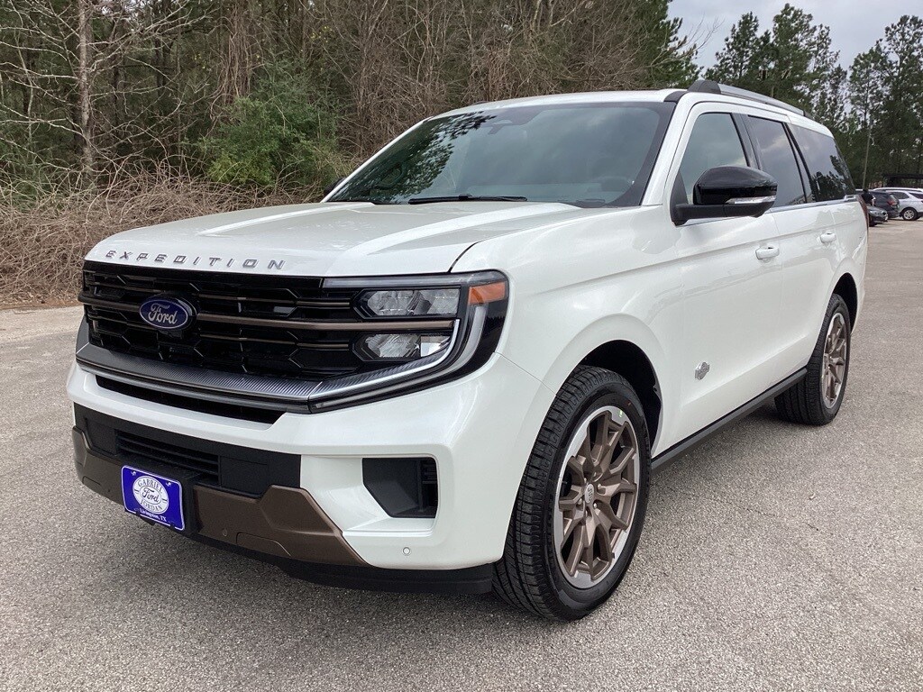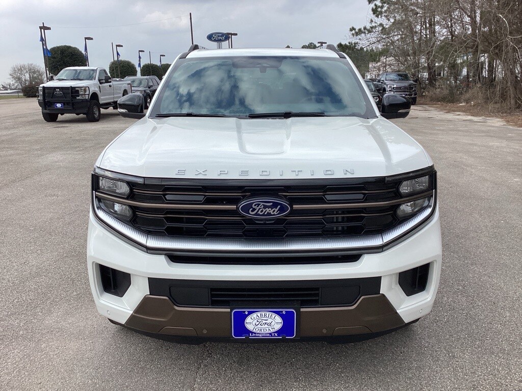 Recent Arrival! This 2026 Ford Expedition King Ranch in Star White Metallic Tri-Coat comes with the following features: EcoBoost 3.5L V6 GTDi DOHC 24V Twin Turbocharged 10-Speed Automatic 4WD 4WD Equipment Group 400A (3.73 Axle Ratio, Digital Device Holder, Heated/Ventilated Premium Del Rio Leather Front Captain's Chairs, and Wheels: 22" x 9.0" Diamond Cut Machined Face Aluminum), Ford Connectivity Package (1-Year Included), 4WD, 22 Speakers, 3rd row seats: split-bench, 4-Wheel Disc Brakes, ABS brakes, Adaptive suspension, Adjustable pedals, Air Conditioning, Alloy wheels, AM/FM radio: SiriusXM with 360L, Apple CarPlay/Android Auto, Auto High-beam Headlights, Auto-dimming door mirrors, Auto-dimming Rear-View mirror, Automatic temperature control, Brake assist, Bumpers: body-color, Compass, Delay-off headlights, Driver door bin, Driver vanity mirror, Dual front impact airbags, Dual front side impact airbags, Electronic Stability Control, Emergency communication system: 911 Assist, Exterior Parking Camera Rear, Ford Digital Experience, Four wheel independent suspension, Front anti-roll bar, Front Bucket Seats, Front Center Armrest, Front dual zone A/C, Front License Plate Bracket, Front reading lights, Fully automatic headlights, Garage door transmitter, Genuine wood dashboard insert, Genuine wood door panel insert, Heated door mirrors, Heated front seats, Heated rear seats, Heated steering wheel, Illuminated entry, Leather steering wheel, Low tire pressure warning, Memory seat, Navigation System, Occupant sensing airbag, Outside temperature display, Overhead airbag, Overhead console, Panic alarm, Passenger door bin, Passenger vanity mirror, Pedal memory, Power door mirrors, Power driver seat, Power moonroof: Vista Roof, Power passenger seat, Power steering, Power windows, Radio data system, Radio: B&O Unleashed Sound System by Bang & Olufsen, Rain sensing wipers, Rear air conditioning, Rear anti-roll bar, Rear reading lights, Rear window defroster, Rear window wiper, Reclining 3rd row seat, Remote keyless entry, Security system, SiriusXM with 360L, Speed control, Speed-sensing steering, Speed-Sensitive Wipers, Split folding rear seat, Spoiler, Steering wheel memory, Steering wheel mounted audio controls, Tachometer, Telescoping steering wheel, Tilt steering wheel, Traction control, Trip computer, Turn signal indicator mirrors, Variably intermittent wipers, Ventilated front seats.