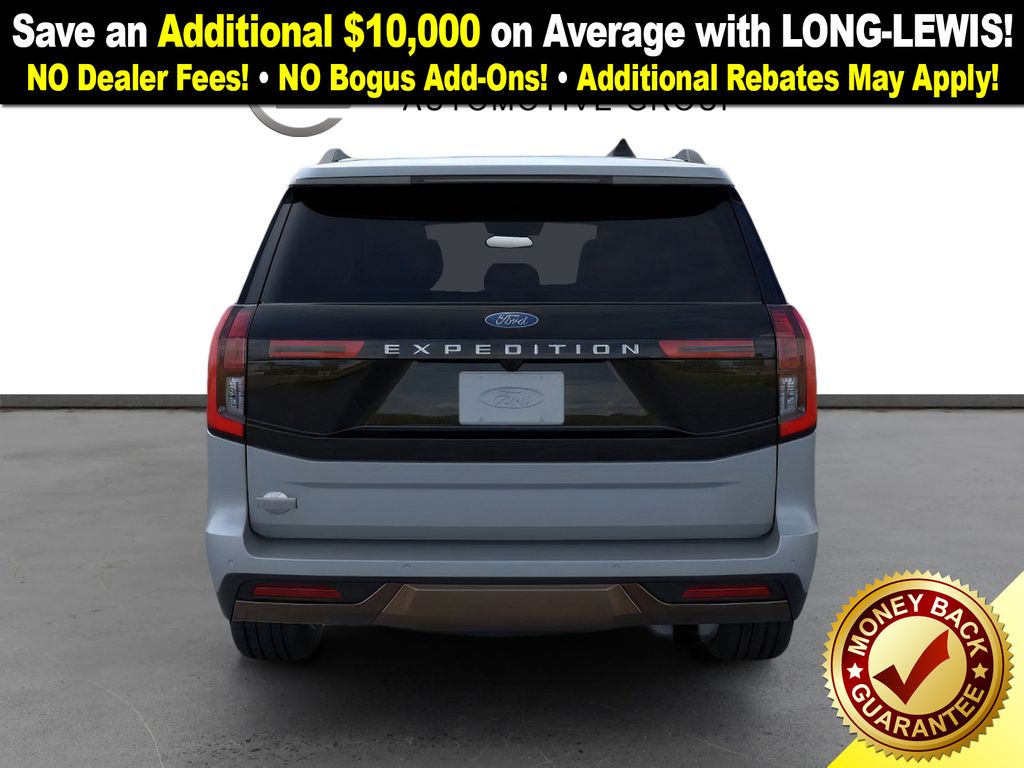 Glacier Gray Metallic Tri-Coat 2026 Ford Expedition King Ranch NFT 4WD 10-Speed Automatic EcoBoost 3.5L V6 GTDi DOHC 24V Twin Turbocharged 4WD, 22 Speakers, 3.73 Axle Ratio, 3rd row seats: split-bench, 4-Wheel Disc Brakes, ABS brakes, Adaptive suspension, Adjustable pedals, Air Conditioning, Alloy wheels, AM/FM radio: SiriusXM with 360L, Apple CarPlay/Android Auto, Auto High-beam Headlights, Auto-dimming door mirrors, Auto-dimming Rear-View mirror, Automatic temperature control, Brake assist, Bumpers: body-color, Compass, Delay-off headlights, Driver door bin, Driver vanity mirror, Dual front impact airbags, Dual front side impact airbags, Electronic Stability Control, Emergency communication system: 911 Assist, Exterior Parking Camera Rear, Ford Connectivity Package (1-Year Included), Ford Digital Experience, Four wheel independent suspension, Front anti-roll bar, Front Bucket Seats, Front Center Armrest, Front dual zone A/C, Front License Plate Bracket, Front reading lights, Fully automatic headlights, Garage door transmitter, Genuine wood dashboard insert, Genuine wood door panel insert, Heated door mirrors, Heated front seats, Heated rear seats, Heated steering wheel, Heated/Ventilated Premium Del Rio Leather Front Captain's Chairs, Illuminated entry, Leather steering wheel, Low tire pressure warning, Memory seat, Navigation System, Occupant sensing airbag, Outside temperature display, Overhead airbag, Overhead console, Panic alarm, Passenger door bin, Passenger vanity mirror, Pedal memory, Power door mirrors, Power driver seat, Power moonroof: Vista Roof, Power passenger seat, Power steering, Power windows, Radio data system, Radio: B&O Unleashed Sound System by Bang & Olufsen, Rain sensing wipers, Rear air conditioning, Rear anti-roll bar, Rear reading lights, Rear window defroster, Rear window wiper, Reclining 3rd row seat, Remote keyless entry, Security system, SiriusXM with 360L, Speed control, Speed-sensing steering, Speed-Sensitive Wipers, Split folding rear seat, Spoiler, Steering wheel memory, Steering wheel mounted audio controls, Tachometer, Telescoping steering wheel, Tilt steering wheel, Traction control, Trip computer, Turn signal indicator mirrors, Variably intermittent wipers, Ventilated front seats.