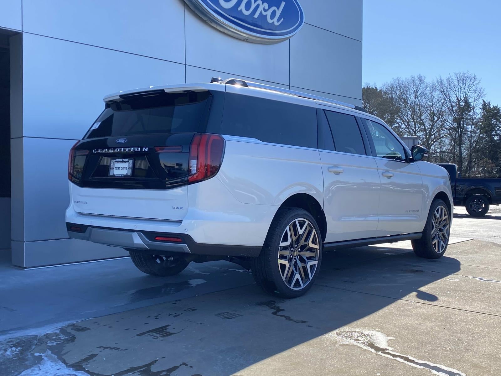 Recent Arrival! New Price! White 2026 Ford Expedition Max Platinum 4WD 10-Speed Automatic 3.5L V6 Ford Connectivity Package (1-Year Included) 10 Speakers 2nd Row Power-Folding Captain's Chairs 3rd row seats: split-bench 4-Wheel Disc Brakes ABS brakes Air Conditioning Alloy wheels AM/FM radio: SiriusXM with 360L Apple CarPlay/Android Auto Auto High-beam Headlights Auto-dimming door mirrors Auto-dimming Rear-View mirror Automatic temperature control Brake assist Bumpers: body-color Compass Delay-off headlights Driver door bin Driver vanity mirror Dual front impact airbags Dual front side impact airbags Electronic Stability Control Emergency communication system: 911 Assist Exterior Parking Camera Rear Ford Digital Experience Four wheel independent suspension Front anti-roll bar Front Bucket Seats Front Center Armrest Front dual zone A/C Front reading lights Fully automatic headlights Garage door transmitter Genuine wood dashboard insert Genuine wood door panel insert Heated and Ventilated Leather Front Captain's Chairs Heated door mirrors Heated front seats Heated rear seats Heated steering wheel Illuminated entry Leather steering wheel Low tire pressure warning Memory seat Navigation System Occupant sensing airbag Outside temperature display Overhead airbag Overhead console Panic alarm Passenger door bin Passenger vanity mirror Power door mirrors Power driver seat Power moonroof: Vista Roof Power passenger seat Power steering Power windows Radio data system Radio: B&O Sound System by Bang and Olufsen Rain sensing wipers Rear air conditioning Rear anti-roll bar Rear reading lights Rear window defroster Rear window wiper Reclining 3rd row seat Remote keyless entry Security system SiriusXM with 360L Speed control Speed-sensing steering Speed-Sensitive Wipers Split folding rear seat Spoiler Steering wheel memory Steering wheel mounted audio controls Tachometer Telescoping steering wheel Tilt steering wheel Traction control Trip computer Turn signal indicator mirrors Variably intermittent wipers Ventilated front seats Voltmeter and Wheels: 20' x 8.5' Ebony Bright Machined Aluminum.
