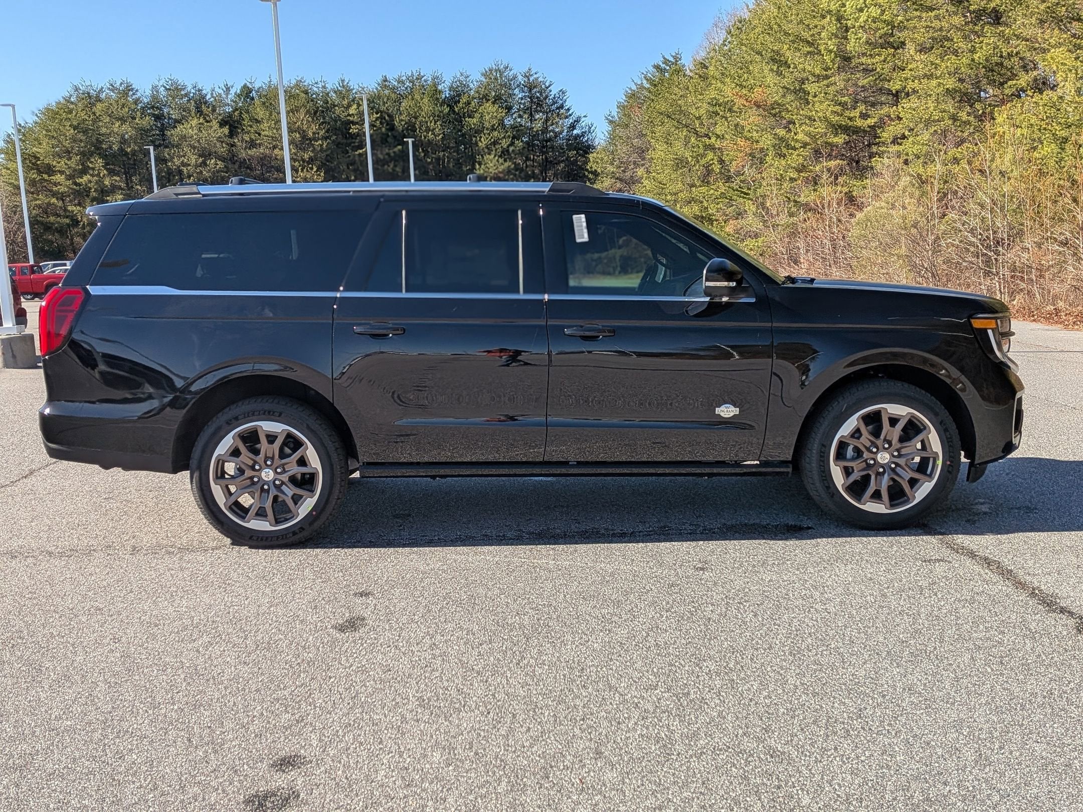 The 2026 Ford Expedition Max King Ranch is a new sport utility vehicle featuring a 3.5L EcoBoost V6 engine, four wheel drive, and a range of luxury and technology features. This in-stock vehicle offers a comfortable interior with Mesa leather, advanced connectivity, and a suite of driver assistance systems. The Agate Black Metallic exterior is complemented by a panoramic sunroof, premium sound system, and a host of premium materials and finishes. Please reference the window sticker for more information on final vehicle configuration.