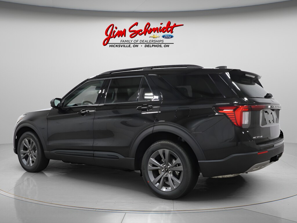 $5,780 off MSRP! AppLink/Apple CarPlay and Android Auto, Rear View Camera, SYNC Voice System, 18" Spare Tire and Wheel, Explorer Active 200A Equipment Group, 2.3L EcoBoost I-4, 10-Speed Automatic, 4WD, Agate Black Metallic, Space Gray with Heated ActiveX Seating Material Captain's Chairs, 4-Wheel Disc Brakes, ABS brakes, Active Comfort Package, AM/FM Stereo, Auto High-beam Headlights, Automatic temperature control, Brake assist, Compass, Electronic Stability Control, Equipment Group 200A Standard Package, Four wheel independent suspension, Front Fascia, Heated ActiveX Seating Material Captain's Chairs, Heated Steering Wheel, Illuminated entry, Low tire pressure warning, Outside temperature display, Power driver seat, Power steering, Power windows, Rear window defroster, Rear window wiper, Remote keyless entry, Remote Start System, Second Row Hvac Controls, SecuriCode Keyless Entry Keypad, Speed control, Speed-sensing steering, Split folding rear seat, Steering wheel mounted audio controls, Traction control, Unique Cloth Heated Captain's Chairs, Wheels: 20" Carbonized Gray-Painted Aluminum. Jim Schmidt Ford is located just inside the Ohio line on S R 2 in Hicksville. We are a full service dealership providing our customers with bank financing and Service after the sale. Call one of our friendly and knowledgeable sales staff today. Price includes $3500 Retail Customer Cash. Exp. 03/31/2026.
