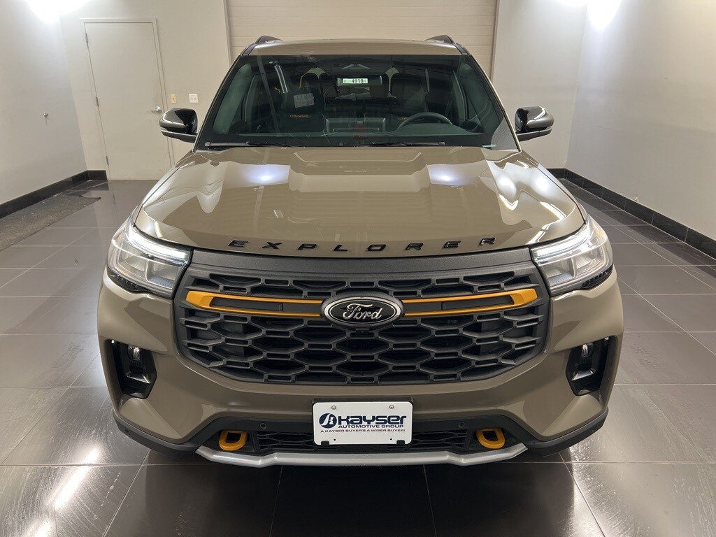 Recent Arrival! $5,200 off MSRP! 2026 Ford Explorer Tremor 3rd Row PowerFold Seats, 3rd row seats: bench, Ambient Lighting, Apple CarPlay/Android Auto, Auto High-beam Headlights, BlueCruise Hardware, Brake assist, Equipment Group 800A Standard Package, Heated Front Seats, Heated rear seats, Heated steering wheel, Heated/Ventilated Miko Captain's Chairs, Illuminated entry, Internet access capable: FordPass Connect 5G, Memory Driver's Seat, Multicontour Seats with Front Active Motion, Navigation System, Panoramic Fixed Glass Roof with Power Shade, Power Liftgate, Power-Folding with Autofold Side Mirrors, Radio: B&O Sound System by Bang & Olufsen, Rain-Sensing Wipers (front Only), Rear View Camera, Rear window wiper, Tremor Ultimate Package, Ventilated front seats, Wheels: 18" High Gloss Black-Painted Aluminum. At Kayser we do things a bit differently. First, we keep our operating expenses low so we can offer you lower prices. You probably haven't heard our latest radio ad or seen our newest TV Ad, that's because we don't have any. Lower cost for us mean lower prices for you. Second, our sales people are not paid on commission, they earn a preset amount for any vehicle they sell. We have a "Best Price Policy" meaning you always get the Best Price. No need to negotiate to get our lowest price. Everybody gets it upfront. We back that up with a Price Check Report showing you our Best price and how it compares to the competition. Lastly, you have a 3 day no-questions asked full money back guarantee. To ensure you buy the perfect vehicle for you. At Kayser we want you to love buying your vehicle as much as you love driving it. Thanks for your interest in our vehicle and happy shopping!