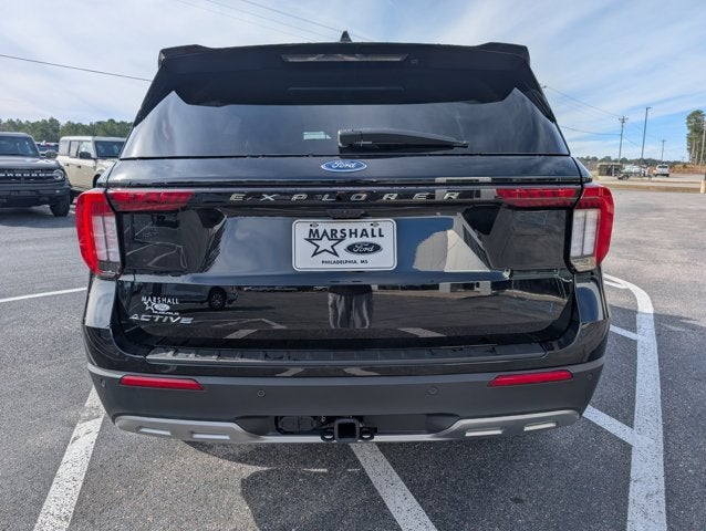 The 2026 Ford Explorer Active w/100A Pkg is in stock at Marshall Ford Co, Inc. in Philadelphia, MS. This SUV features a 2.3L EcoBoost I-4 engine with auto start-stop technology, rear wheel drive, and a full range of modern technology and safety features. The Explorer is designed for comfort and convenience, with features like Ultra Dark Space Gray interior, Agate Black Metallic exterior, and a host of connectivity options. Visit the store to learn more about this new Explorer model.