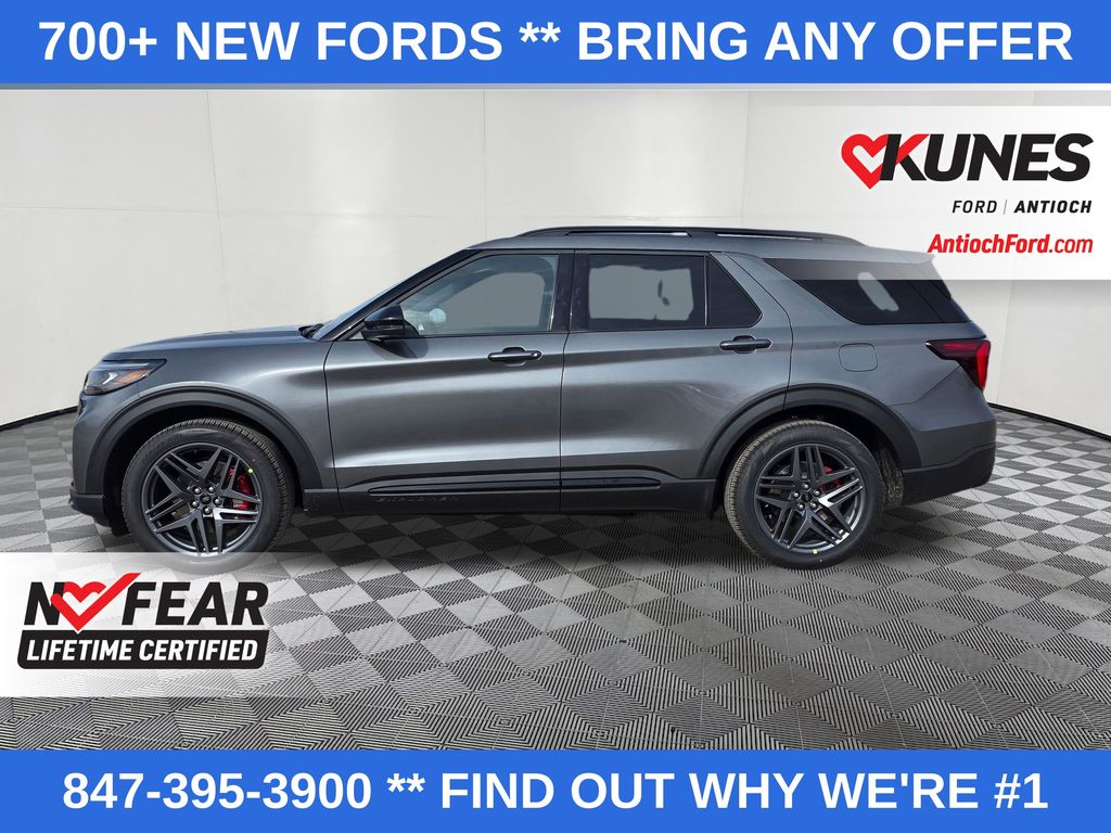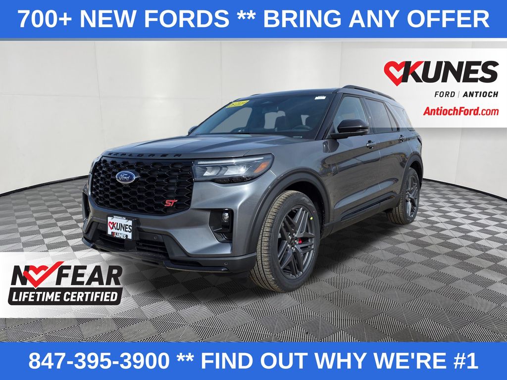 $7,161 off MSRP! ** Free lifetime warranty! Kunes Country Exclusive -- Complimentary lifetime warranty on all new vehicles at no charge! 4WD. 2026 Ford Explorer ST 3.0L EcoBoost V6 4WD 10-Speed Automatic 4D Sport Utility Carbonized Gray Metallic. Also included with every new vehicle we sell: Lifetime "No Fear" warranty, first oil change, and at home courtesy delivery! Call us for full details! We pride ourselves on honesty and integrity, but please note that mistakes or misprints due to human error are possible. Find out why our dealerships have won DealerRater.com Dealer of the Year a whopping 10 times! Call, email, or live chat with one of our friendly sales professionals now to schedule your test drive!