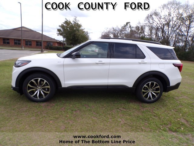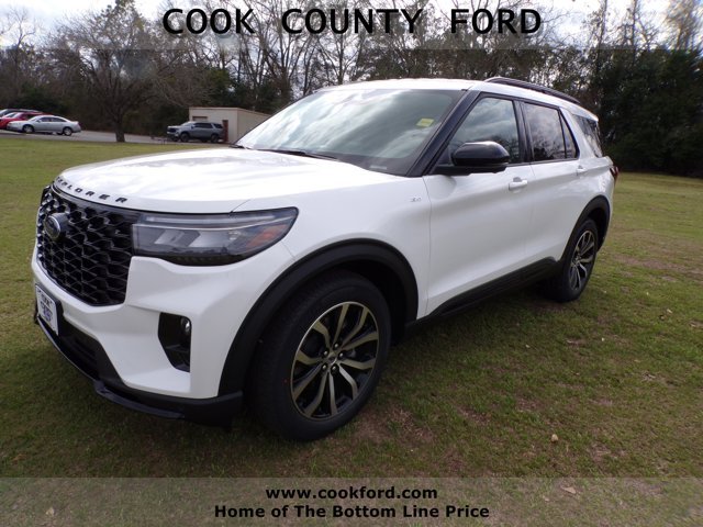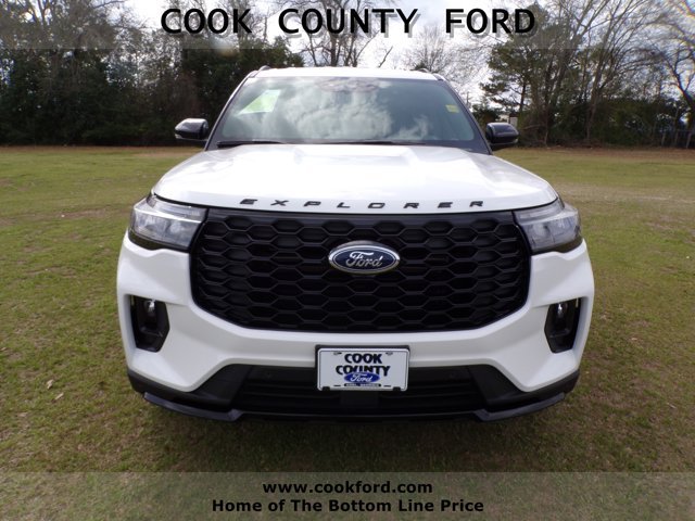 Explorer ST-Line RWD 2026 model year Star White Metallic Tri-Coat Onyx unique cloth inserts included on this vehicle Equipment Group 300A optional equipment/other 20" Mach Aluminum wheels with painted package 2.3L EcoBoost I-4 engine 10-speed auto transmission P255/55R20 AS BSW tires floor liners/carpet mats: Star White Metallic Tri-Coat, front and 2nd rows black carpet floor mats. At Cook County Ford we have changed the way you buy vehicles. We call it "Bottom Line Pricing". Unlike any other dealer in our area, we post our absolute lowest and best Bottom Line Price on every vehicle every day both on the lot and online. No-haggle, no hassle, no kidding. Our Sales Staff are Non-Commissioned so they'll help find the car that is best for you, not the car that's best for the salesperson's pocketbook. And now our current inventory of new Ford vehicles and preowned vehicles are among the largest in the area. Come by and see why Cook County Ford is South Georgia's Ford Place.