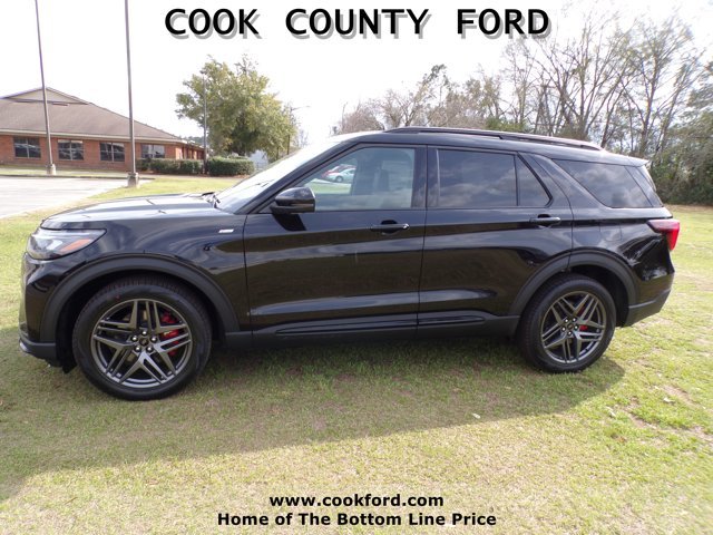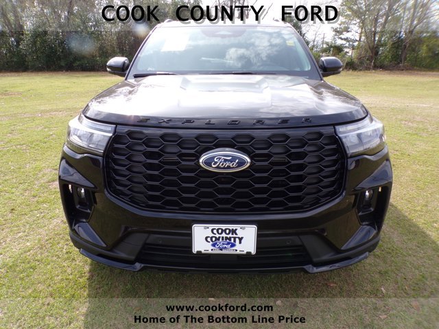 Explorer ST-Line RWD 2026 model year Agate Black Metallic Onyx unique cloth inserts included on this vehicle Equipment Group 300A optional equipment/other 2.3L EcoBoost I-4 engine 10-speed auto transmission FLR liners/carpet mats: RWS 1&2 2nd row captain's chairs second row heated seats keyless entry keypad BlueCruise hardware premium package ambient lighting auto-dimming rearview mirror 110V/150W AC power outlet ST-Line street pack P275/45R21 A/S BSW tires performance brakes 21" aluminum wheels 18" spare wheel and jack kit Ford Connectivity -1yr trial front license plate bracket. At Cook County Ford we have changed the way you buy vehicles. We call it "Bottom Line Pricing". Unlike any other dealer in our area, we post our absolute lowest and best Bottom Line Price on every vehicle every day both on the lot and online. No-haggle, no hassle, no kidding. Our Sales Staff are Non-Commissioned so they'll help find the car that is best for you, not the car that's best for the salesperson's pocketbook. And now our current inventory of new Ford vehicles and preowned vehicles are among the largest in the area. Come by and see why Cook County Ford is South Georgia's Ford Place.