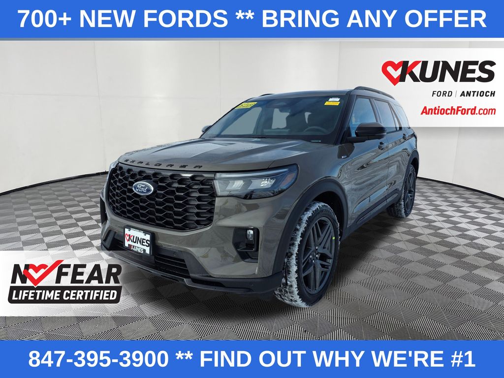 $5,561 off MSRP! ** Free lifetime warranty! Kunes Country Exclusive -- Complimentary lifetime warranty on all new vehicles at no charge! 4WD. 2026 Ford Explorer ST-Line 2.3L EcoBoost I-4 4WD 10-Speed Automatic 4D Sport Utility Marsh Gray 20/27 City/Highway MPG. Also included with every new vehicle we sell: Lifetime "No Fear" warranty, first oil change, and at home courtesy delivery! We pride ourselves on honesty and integrity, but please note that mistakes or misprints due to human error are possible. Find out why our dealerships have won DealerRater.com Dealer of the Year a whopping 10 times! Call, email, or live chat with one of our friendly sales professionals now to schedule your test drive!