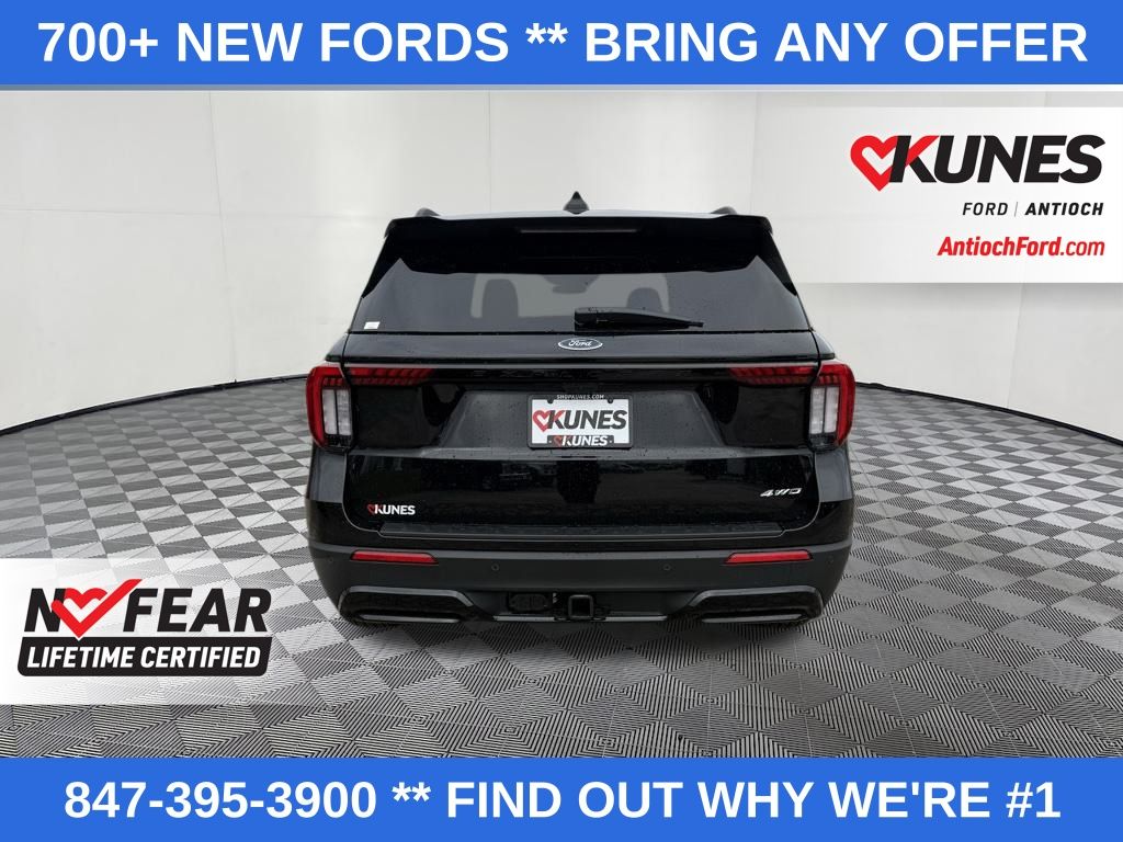 4WD. 2026 Ford Explorer ST-Line 2.3L EcoBoost I-4 4WD 10-Speed Automatic 4D Sport Utility Black Metallic 20/27 City/Highway MPG. Also included with every new vehicle we sell: Lifetime "No Fear" Warranty, first oil change, and at home courtesy delivery! We pride ourselves on honesty and integrity, but please note that mistakes or misprints due to human error are possible. Find out why our dealerships have won DealerRater.com Dealer of the Year a whopping 10 times! Call, email, or live chat with one of our friendly sales professionals now to schedule your test drive!