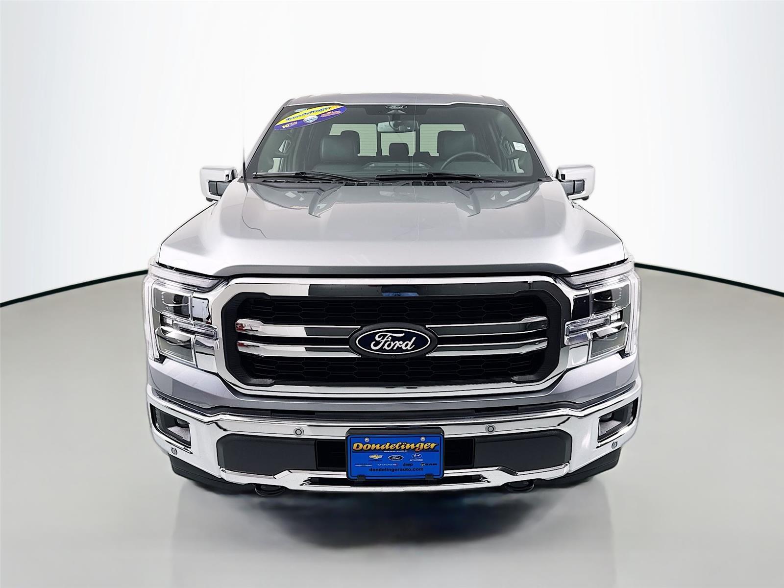2026 Ford F-150 Lariat. Iconic Silver exterior with Black interior. This new F-150 features a V6 EcoBoost engine, four-wheel drive, and a range of advanced technology and safety features. The vehicle is equipped with a navigation system, lane departure warning, automatic temperature control, and an emergency communication system. Enjoy a comfortable ride with heated leatherette seats, ventilated front seats, and a heated steering wheel. The F-150 is designed for both work and comfort, offering impressive towing capacity and a smooth driving experience.