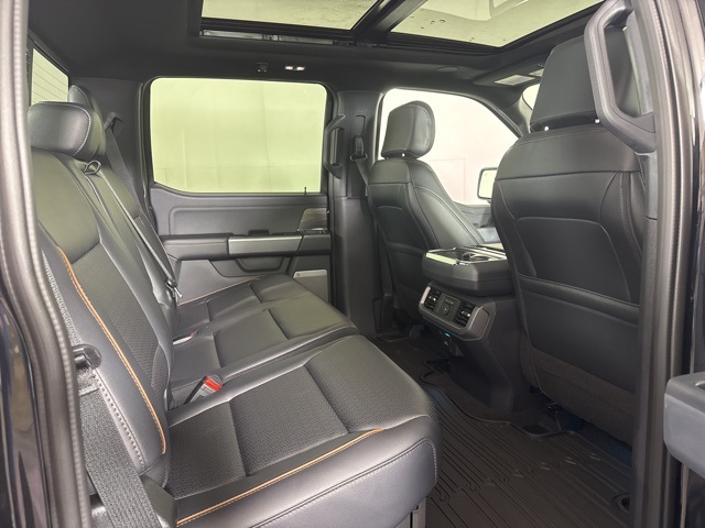 Agate Black Metallic 4WD 10-Speed Automatic 5.0L V8 4WD, 2nd Row Heated Seats, 4 Pickup Box Tie-Down Plates, 4-Wheel Disc Brakes, 4x4 FX4 Off-Road Bodyside Decal, 8 Speakers, ABS brakes, ActiveX Trimmed Bucket Seats, Air Conditioning, Alloy wheels, AM/FM radio: SiriusXM with 360L, Ambient Lighting - Ice Blue Color Only, Auto High-beam Headlights, Auto-dimming door mirrors, Auto-dimming Rear-View mirror, Automatic temperature control, Bed Storage Boxes, Bed Utility Package, Brake assist, Bumpers: chrome, Camper Package, Chrome wheels, Compass, Console Worksurface, Delay-off headlights, Driver door bin, Driver vanity mirror, Driver's Side SecuriCode Keyless-Entry Keypad, Dual front impact airbags, Dual front side impact airbags, Electronic Stability Control, Emergency communication system: SYNC 4 911 Assist, Engine Block Heater, Equipment Group 502A High, Ford Connectivity Package (1-Year Included), Front anti-roll bar, Front Bucket Seats, Front Center Armrest, Front dual zone A/C, Front fog lights, Front License Plate Bracket, Front reading lights, Front wheel independent suspension, Fully automatic headlights, Garage door transmitter, Heated door mirrors, Heated front seats, Heated steering wheel, Hill Descent Control, Illuminated Driver and Passenger Visors, Illuminated entry, Integrated Trailer Brake Controller, Internet access capable: 5G Modem - Ford Connectivity Package, LED Box Lighting, Low tire pressure warning, Memory seat, Mobile Office Package, Monotube Rear Shocks, Navigation system: Connected Navigation, Occupant sensing airbag, Off-Road Tuned Front Shock Absorbers, Outside temperature display, Overhead airbag, Overhead console, Panic alarm, Partitioned Lockable Rear Storage, Passenger door bin, Passenger vanity mirror.