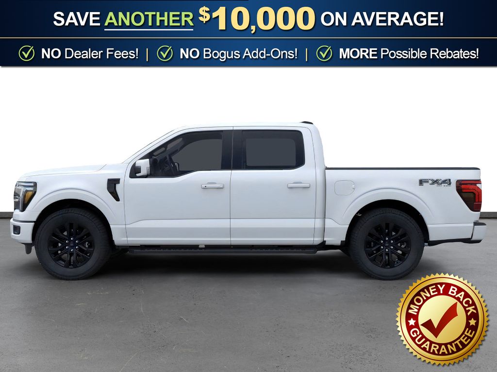 Star White Metallic Tri-Coat 2026 Ford F-150 Lariat NFT 4WD 10-Speed Automatic 5.0L V8 4WD, 4-Wheel Disc Brakes, 4x4 FX4 Off-Road Bodyside Decal, 8 Speakers, ABS brakes, ActiveX Trimmed Bucket Seats, Air Conditioning, Alloy wheels, AM/FM radio: SiriusXM with 360L, Auto High-beam Headlights, Auto-dimming door mirrors, Auto-dimming Rear-View mirror, Automatic temperature control, Black Exterior Badging, Black Grille, Black Taillamp Bezels, Body-Color Front and Rear Bumpers, Brake assist, Bumpers: chrome, Chrome wheels, Compass, Dark Interior Appliques, Delay-off headlights, Driver door bin, Driver vanity mirror, Driver's Side SecuriCode Keyless-Entry Keypad, Dual front impact airbags, Dual front side impact airbags, Electronic Stability Control, Emergency communication system: SYNC 4 911 Assist, Ford Connectivity Package (1-Year Included), Front anti-roll bar, Front Bucket Seats, Front Center Armrest, Front dual zone A/C, Front fog lights, Front License Plate Bracket, Front reading lights, Front wheel independent suspension, Fully automatic headlights, FX4 Off-Road Package, Garage door transmitter, Gray Box Side Decal, Heated door mirrors, Heated front seats, Heated steering wheel, Hill Descent Control, Illuminated entry, Internet access capable: 5G Modem - Ford Connectivity Package, Lariat Black Appearance Package, Low tire pressure warning, Matte Black Tailgate F-150 Decal, Memory seat, Monotube Rear Shocks, Navigation system: Connected Navigation, Occupant sensing airbag, Off-Road Tuned Front Shock Absorbers, Outside temperature display, Overhead airbag, Overhead console, Panic alarm, Passenger door bin, Passenger vanity mirror, Power door mirrors, Power driver seat, Power passenger seat, Power steering, Power windows, Radio data system, Radio: B&O Sound System by Bang and Olufsen, Rain sensing wipers, Rear reading lights, Rear seat center armrest, Rear step bumper, Rear window defroster, Remote keyless entry, Rock Crawl Mode, Security system, Speed control, Split folding rear seat, Steering wheel mounted audio controls, SYNC 4 with Enhanced Voice Recognition, Tachometer, Telescoping steering wheel, Tilt steering wheel, Traction control, Tray Style Floor Liner Without Carpet Mats, Trip computer, Turn signal indicator mirrors, Variably intermittent wipers, Ventilated front seats.