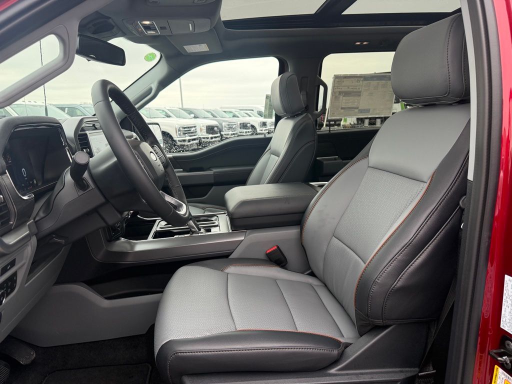 Step into a world of power, luxury, and advanced technology with the striking 2026 Ford F-150 Lariat in dazzling Ruby Red Metallic. Beneath its polished surface lies a dynamic 5.0L V8 engine that effortlessly manages both work and leisure, delivering raw power and unmatched performance. Coupled with a 10-speed automatic transmission, this truck is designed to make every drive smooth, whether you're navigating city streets or conquering rugged terrains with standard 4WD. Inside, the F-150 Lariat embraces you with comfort and sophistication. The Black/Medium Dark Slate interior is a sanctuary equipped with heated and ventilated front seats, ensuring you stay comfortable no matter the season. A heated steering wheel and power-adjustable pedals with memory provide custom comfort at your fingertips. The twin panel moonroof invites natural light, transforming every journey into a luxurious experience. Technology in the F-150 Lariat elevates your drive to the next level. The SYNC 4 system with enhanced voice recognition and the B&O Sound System by Bang & Olufsen fill the cabin with immersive sound and connectivity. The Ford Connectivity Package with a 5G modem ensures you stay connected, turning your truck into a mobile hotspot that keeps you linked to what matters most. Safety features are abundant, giving you peace of mind on every trip. The F-150's automatic high-beam headlights and emergency communication system via SYNC 4 ensure you can drive with confidence, while the Tow/Haul Package and integrated trailer brake controller make towing safer and hassle-free. The 2026 Ford F-150 Lariat isn't just a truck; it's your reliable partner for both everyday commutes and weekend getaways. With its powerful stance on 20 Chrome-Like PVD wheels and a strong rear step bumper, everything about this truck speaks capability and style. The power-sliding rear window and rain-sensing wipers are additional thoughtful touches that make your life easier. Experience the perfect blend of strength, comfort, and advanced features with this robust F-150 at Newton Ford South, where we are committed to delivering an exceptional car-buying experience. Don't wait to make your move on this