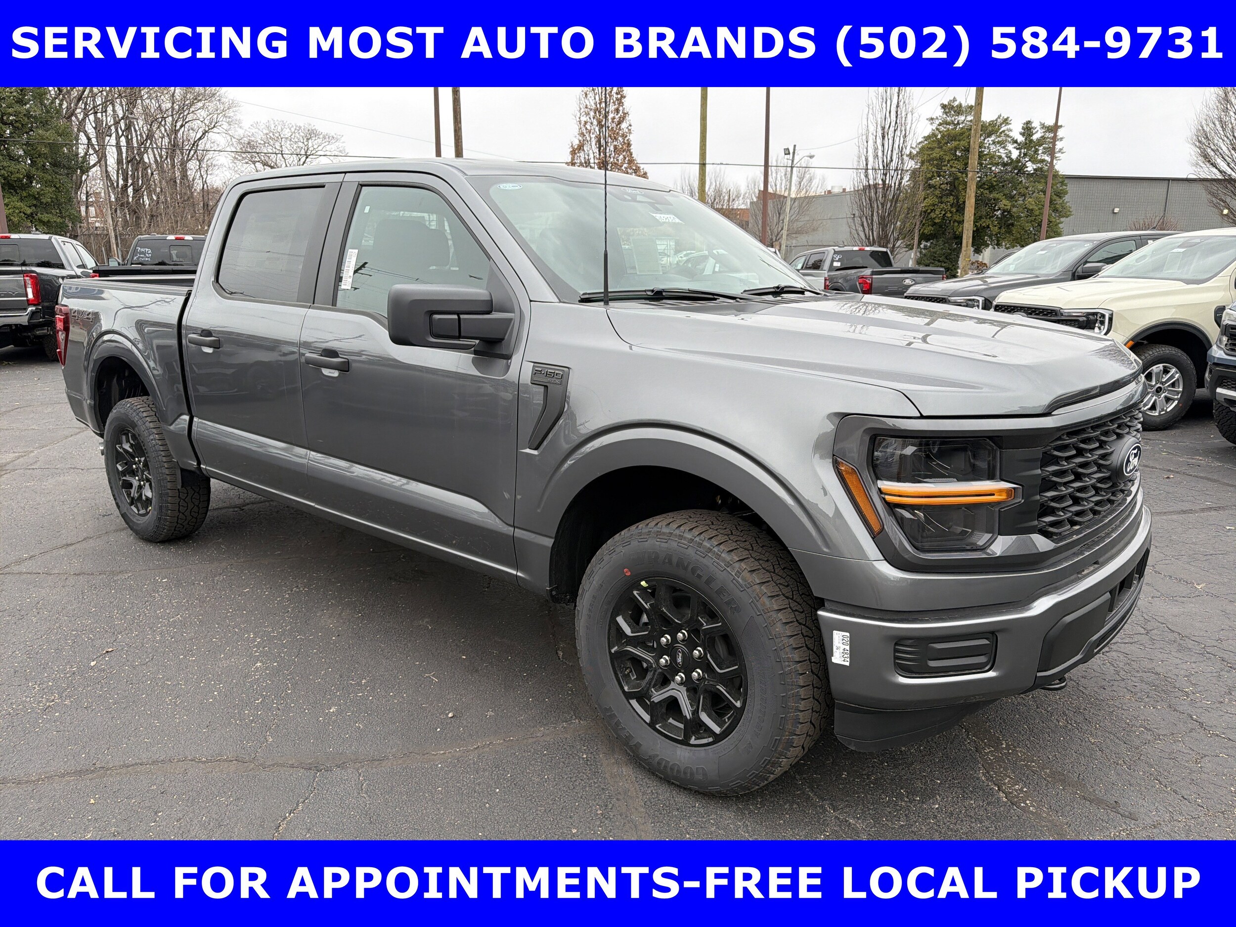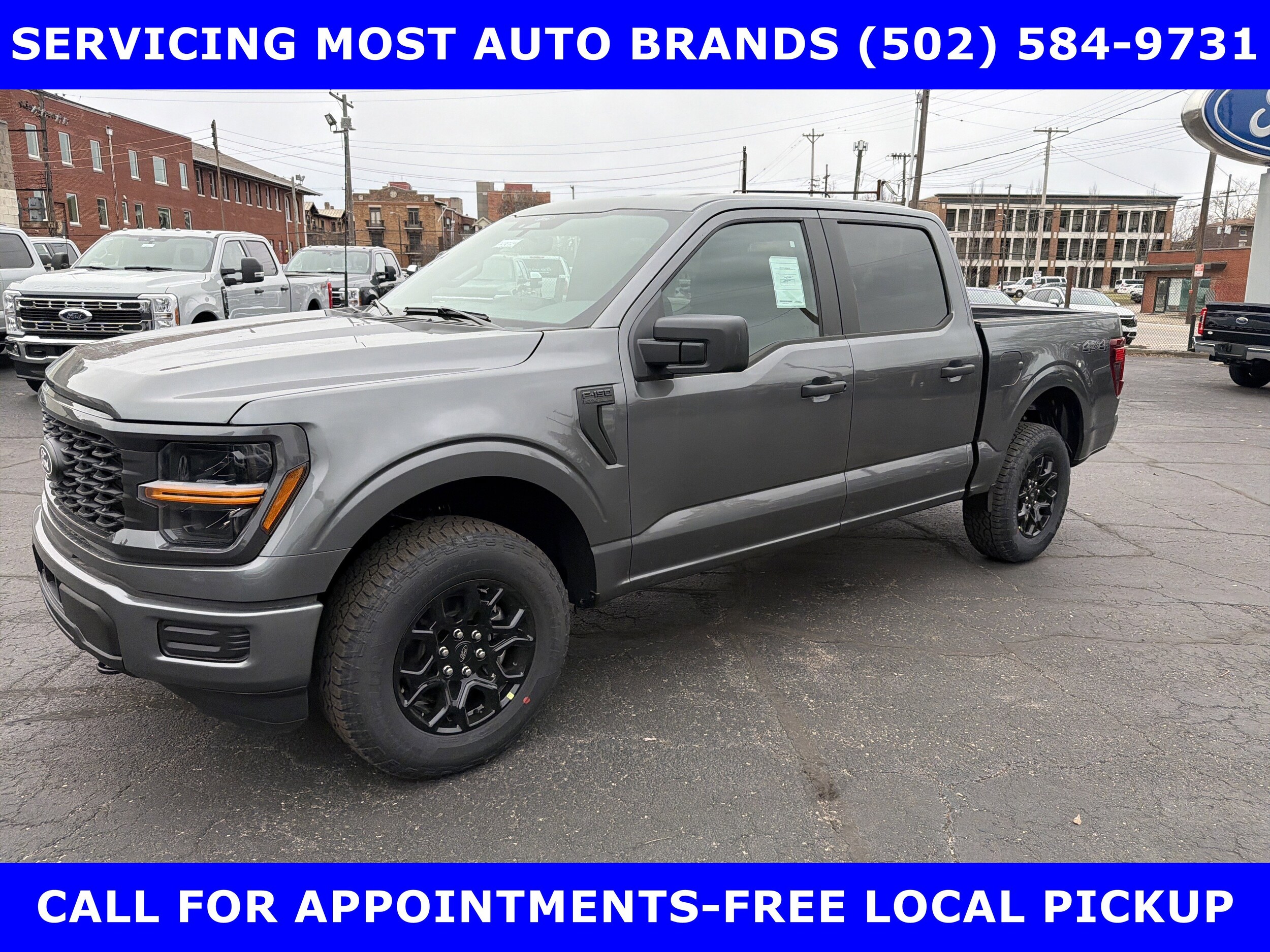 2026 F-150 STX 4x4 SuperCrew. 2.7L V6 Turbo (325hp)-18" Gloss Black Wheels-12" Touch Screen with Rear Parking Sensors-Rear View Camera-Extended Range 36 Gal Fuel Tank-5" Black Aluminum Step Bar-Class IV Trailer Hitch with Smart Trailer Tow Connector-Black Step Bars. We make purchasing easier: Work directly with the owner to get your pricing, trade value, and financing. Drive with confidence backed by Metro Louisville's highest Google-Rated Ford service center. All prices include A/Z plan with all factory, conquest, renewal, or loyalty rebate to dealer. No plan, renewal, or loyalty slightly more. The advertised price does not reflect the final selling price. Tax, title and license fees are not included in the advertised price and are required by law and must be paid by the purchaser. We attempt to update this inventory on a regular basis. However, there can be a delay between the sale of a vehicle and the update of the inventory. Pricing and availability may vary based on a variety of factors, including options, specials and financing qualifications.