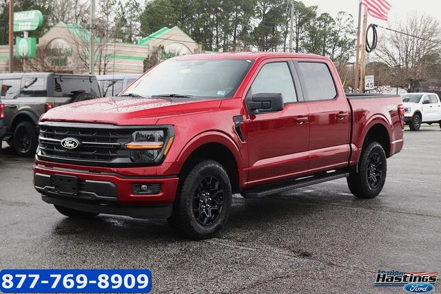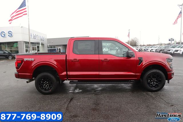 Ruby Red Metallic 2026 Ford F-150 XLT 4WD 10-Speed Automatic 5.0L V8 4WD, 18" Painted Aluminum Wheels, 4-Wheel Disc Brakes, 6 Speakers, ABS brakes, Air Conditioning, Alloy wheels, AM/FM radio: SiriusXM with 360L, Auto High-beam Headlights, Brake assist, Bumpers: body-color, Cloth 40/20/40 Front Seat, Compass, Delay-off headlights, Driver door bin, Driver vanity mirror, Dual front impact airbags, Dual front side impact airbags, Dual-Zone Electronic Automatic Temperature Control, Electronic Stability Control, Emergency communication system: SYNC 4 911 Assist, Equipment Group 301A Base, Ford Connectivity Package (1-Year Included), Front anti-roll bar, Front Center Armrest, Front fog lights, Front License Plate Bracket, Front reading lights, Front wheel independent suspension, Fully automatic headlights, FX4 Off-Road Package, Heated door mirrors, Illuminated entry, Internet access capable: 5G Modem - Ford Connectivity Package, Low tire pressure warning, Occupant sensing airbag, Outside temperature display, Overhead airbag, Overhead console, Panic alarm, Passenger door bin, Passenger vanity mirror, Power door mirrors, Power steering, Power windows, Radio data system, Radio: AM/FM Stereo with SiriusXM 360L, Rear Parking Sensors, Rear reading lights, Rear step bumper, Rear window defroster, Remote keyless entry, Security system, Speed control, Split folding rear seat, Steering wheel mounted audio controls, SYNC 4 with Enhanced Voice Recognition, Tachometer, Telescoping steering wheel, Tilt steering wheel, Tow/Haul Package, Traction control, Trip computer, Variably intermittent wipers, Wrapped Steering Wheel, XLT Black Appearance Package.