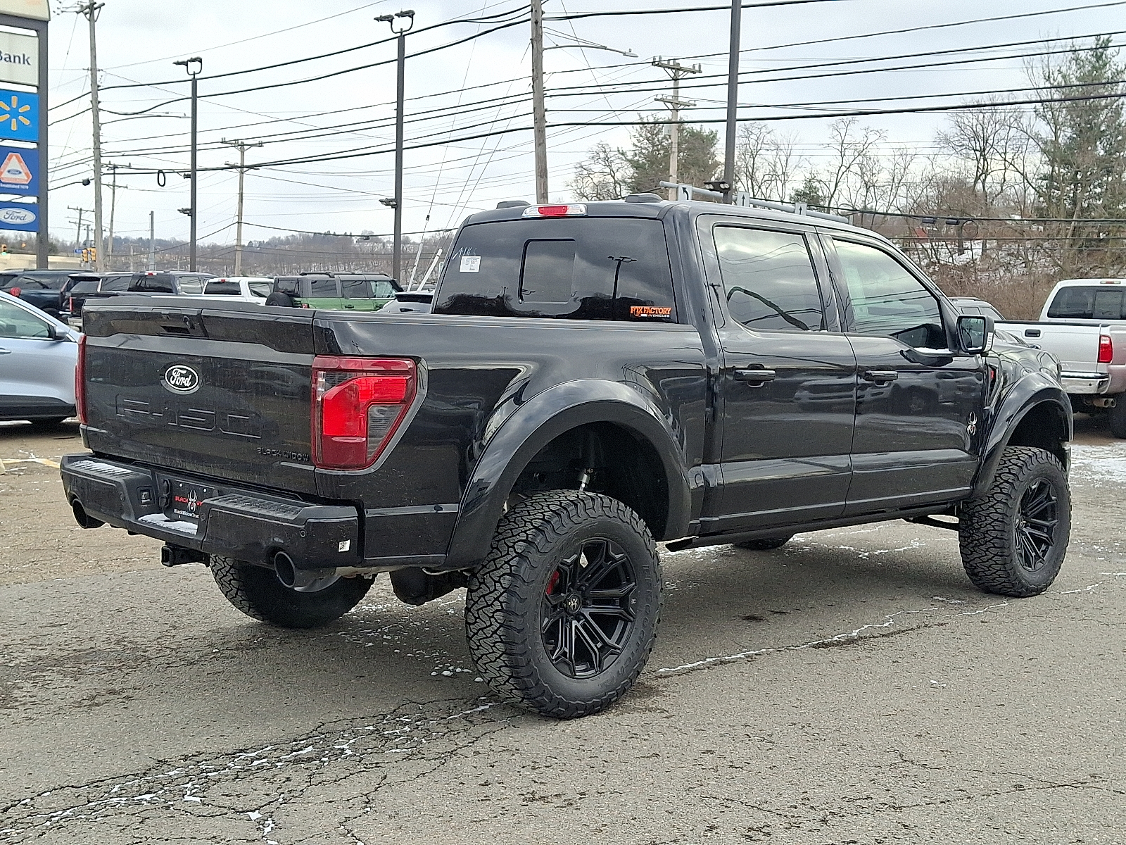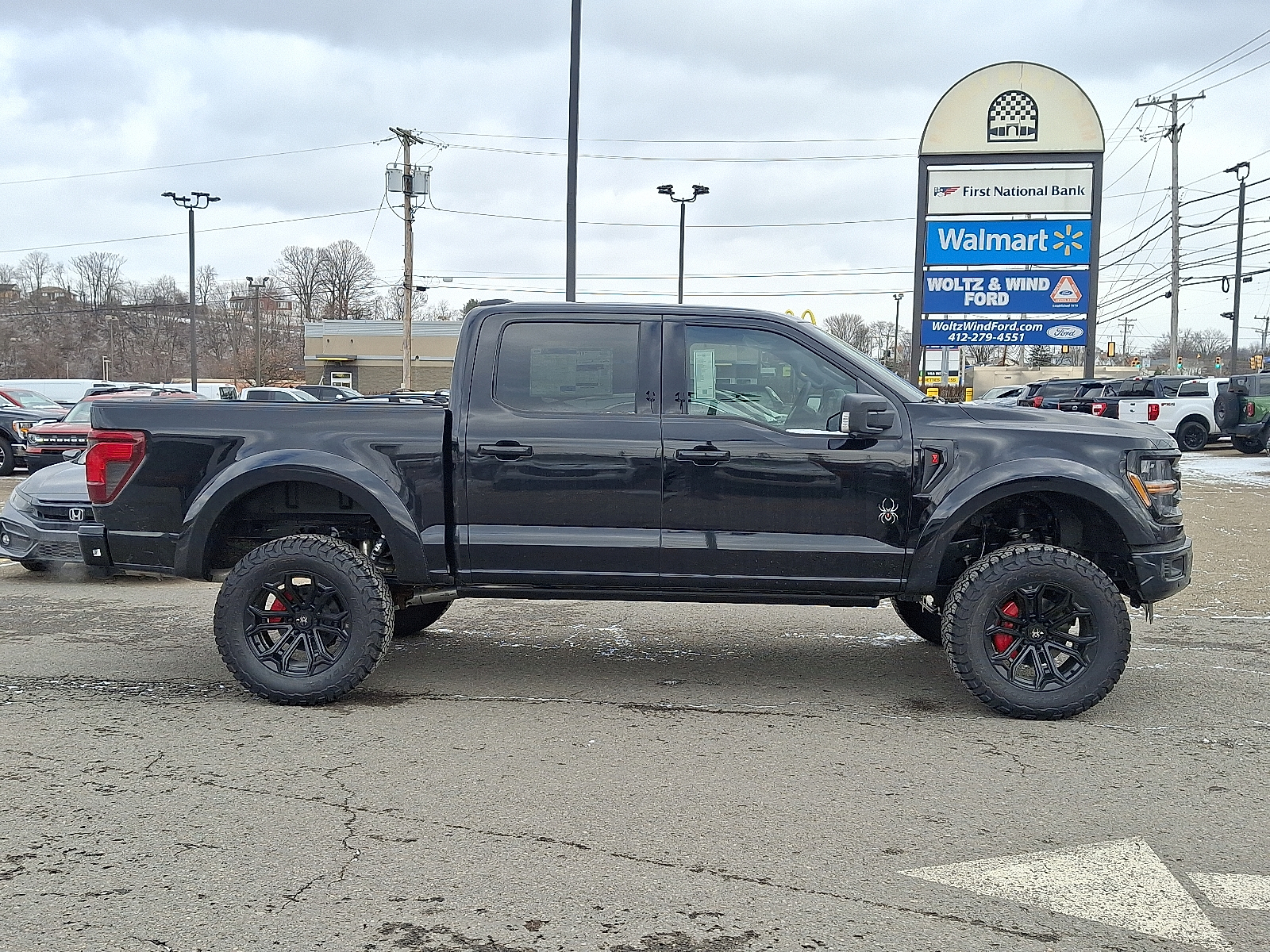 XLT 2026 Ford F-150 Black Widow Package. This vehicle features a 5.0L V8 engine, Four Wheel Drive, and a range of premium and performance features. The Black Widow Package includes a suspension lift system, high-performance wheels and tires, red caliper covers, and a range of interior and exterior upgrades. The vehicle is equipped with advanced technology and safety features, making it a standout choice for those seeking power, comfort, and style in a large pickup.