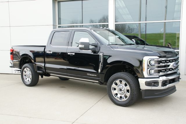 Commanding power meets premium refinement in this 2026 Ford F-250 Super Duty Lariat Crew Cab, finished in sleek Agate Black Metallic. Built to handle the toughest jobs while delivering first-class comfort, this 4WD truck blends heavy-duty capability with upscale features and advanced technology. At the heart of this Super Duty is the legendary 6.7L Power Stroke V8 turbo diesel engine, paired with a 10-speed automatic transmission. Known for its massive torque and reliability, this setup is built for serious towing and hauling. The 3.73 axle ratio enhances pulling power, while the FX4 Off-Road Package adds confidence beyond the pavement with off-road tuned shock absorbers and Hill Descent Control. The Chrome Package gives this truck a bold, high-end look with chrome door handles, mirror caps, exhaust tip, and available 20-inch chrome PVD aluminum wheels. Power-deployable running boards add convenience and a touch of luxury, extending automatically for easy entry and exit. Inside, the Lariat trim transforms the cabin into a refined and comfortable space. Heated and ventilated front seats, a heated steering wheel, and spacious ActiveX-trimmed 40/console/40 seating provide comfort in any season. The flow-through console enhances functionality, while the power-sliding rear window adds convenience and airflow. Technology is front and center with SYNC 4 and enhanced voice recognition, Apple CarPlay and Android Auto compatibility, and a premium B&O Sound System by Bang & Olufsen, with the available Unleashed system delivering an immersive listening experience. A head-up display projects key driving information directly into your line of sight, keeping your focus on the road. This F-250 is also equipped with advanced towing technology, including Pro Trailer Backup Assist and Pro Trailer Hitch Assist, making it easier to connect and maneuver trailers with confidence. Rear parking sensors provide added awareness when navigating tight spaces. Additional features include remote keyless entry, privacy glass, SiriusXM with 360L, and the Ford Connectivity Package with built-in 5G modem capability to keep you connected wherever the job takes you. With its diesel strength, premium interior, advanced towing features, and bold chrome styling, this 2026 Ford F-250 Super Duty Lariat is built to perform at a high level while keeping you comfortable, connected, and in control every mile of the way.