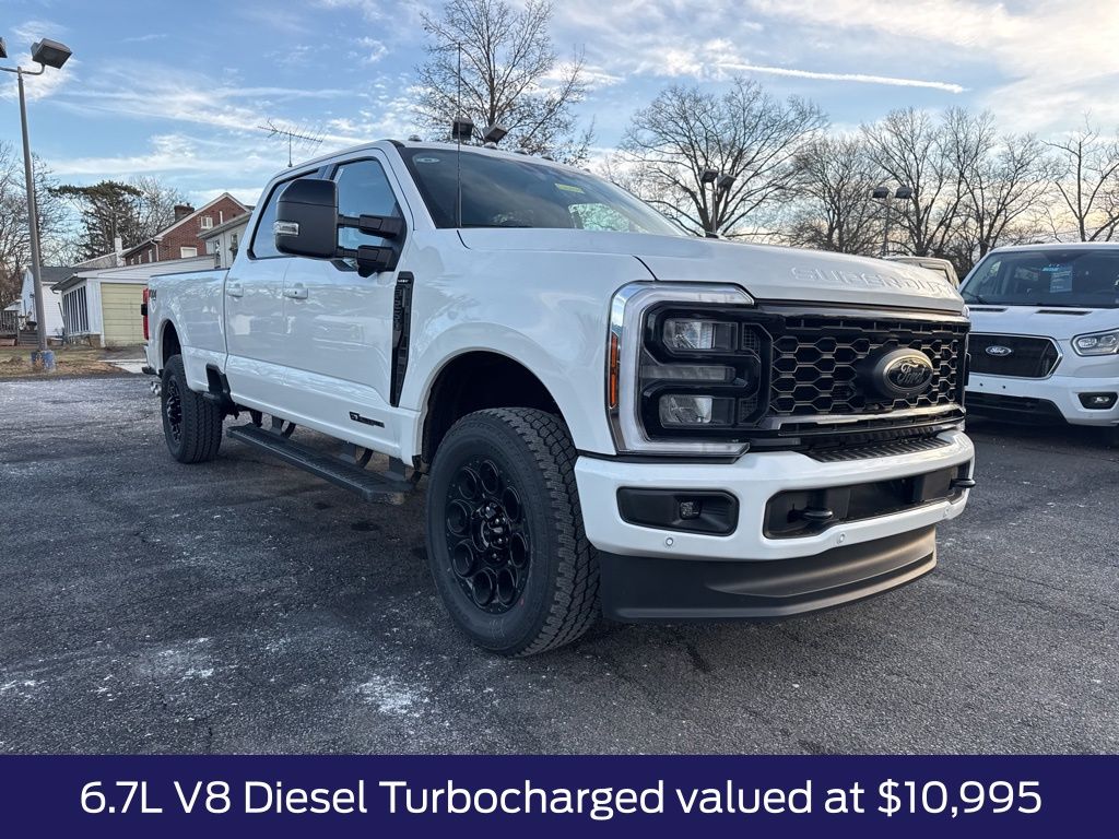 Star White Metallic Tri-Coat 2026 Ford F-250SD Lariat 4WD 10-Speed Automatic Power Stroke 6.7L V8 DI 32V OHV Turbodiesel 4WD, 4-Way Adjustable Headrests, 6" Ebony Black Angular Running Boards, Black Appearance Package, Black Painted Front Grille Surround, Body Color Front & Rear Bumpers, Ebony Black Painted Mirror Caps, Ford Connectivity Package (1-Year Included), FX4 Off-Road Package, Head-Up Display, Hill Descent Control, Lane Departure Warning System, Lariat Premium Package, Lariat Ultimate Package, Off-Road Specifically Tuned Shock Absorbers, Power-Deployable Running Boards, Power-Sliding Rear-Window w/Defrost, Privacy Glass, Pro Trailer Backup Assist, Pro Trailer Hitch Assist, Radio: B&O Unleashed Sound System by Bang & Olufsen, Rear Wheel Well Liners (Pre-Installed), SiriusXM w/360L, Snow Plow Prep Package, SYNC 4 w/Enhanced Voice Recognition, Tailgate Step & Handle, Tough Bed Spray-In Bedliner, Unique FX4 Off-Road Box Decal, Wheels: 20" Ebony Black High Gloss.