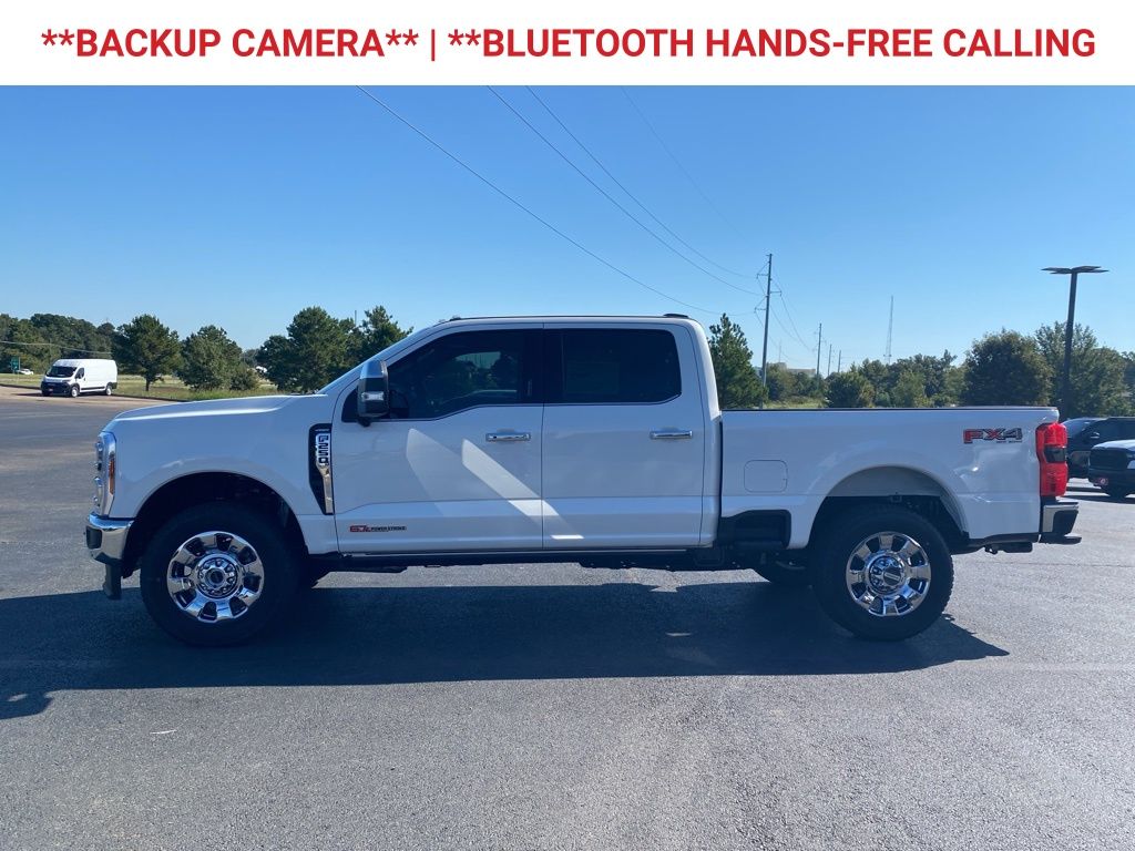 Star White Metallic Tri-Coat 2026 Ford F-250SD Lariat 4WD 10-Speed Automatic 6.7L High Output Power Stroke V8 Diesel. The price does not include the following: $299 for window tint, $299 for VIN etching, $599 for Paint protection, $399 mudflaps (Duallys only) and $699 for bedliner (trucks only). It also excludes tax, title, license, and a documentation fee of $225.