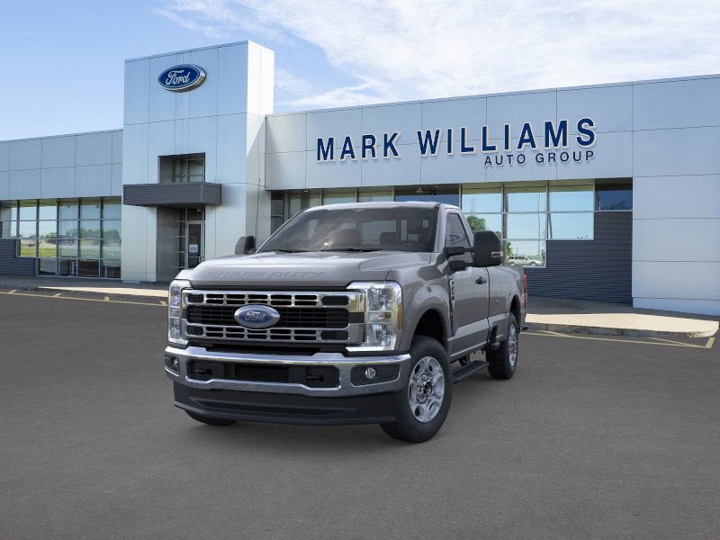 Gray Metallic 2026 Ford F-250SD XLT 4WD 10-Speed Automatic 7.3L V8 PFI SOHC 16V Federal 405hp 4WD, 4 Speakers, 4-Wheel Disc Brakes, 5th Wheel/Gooseneck Hitch Prep Package, ABS brakes, Air Conditioning, AM/FM radio, Brake assist, Cloth 40/20/40 Split Bench Seat, Compass, Delay-off headlights, Dual front impact airbags, Dual front side impact airbags, Electronic Stability Control, Emergency communication system: SYNC 4 911 Assist, Exterior Parking Camera Rear, Ford Connectivity Package (1-Year Included), Front anti-roll bar, Front Center Armrest w/Storage, Front reading lights, Fully automatic headlights, GVWR: 10,000 Lb Payload Package, Heated door mirrors, Illuminated entry, Internet access capable: 5G Modem - Ford Connectivity Package, LED Box Lighting, Low tire pressure warning, Outside temperature display, Overhead airbag, Overhead console, Panic alarm, Passenger cancellable airbag, Passenger vanity mirror, Platform Running Boards, Power door mirrors, Power steering, Power windows, Radio: AM/FM Stereo with MP3 Player, Rear.