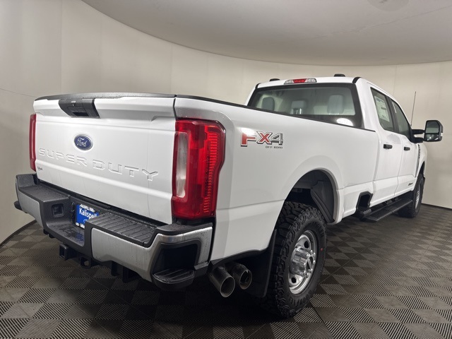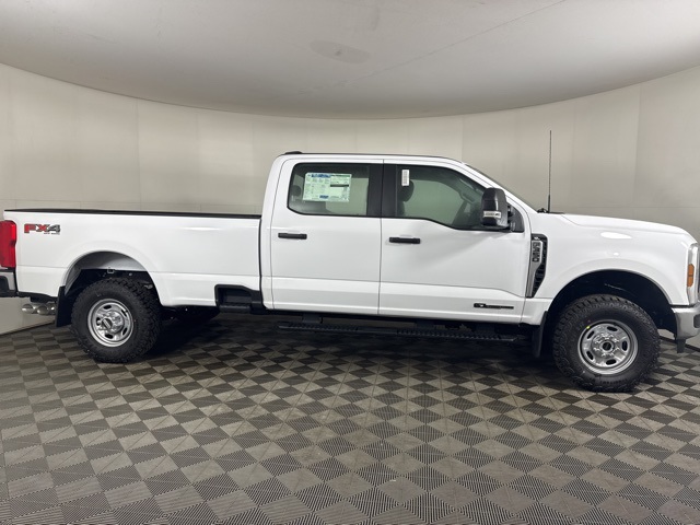 Oxford White 4WD 10-Speed Automatic Power Stroke 6.7L V8 DI 32V OHV Turbodiesel 4WD, 17 Argent Painted Steel Wheels, 4-Wheel Disc Brakes, 410 Amp Dual Alternators, 5th Wheel/Gooseneck Hitch Prep Package, 6 Speakers, ABS brakes, Air Conditioning, AM/FM radio, Brake assist, Bright Chrome Hub Covers and Center Ornaments, Camper Package, Chrome Front Bumper, Chrome Rear Step Bumper, Cloth 40/20/40 Split Bench Seat, Compass, Delay-off headlights, Dual AGM 68 AH Battery, Dual front impact airbags, Dual front side impact airbags, Electronic Stability Control, Emergency communication system: SYNC 4 911 Assist, Engine Block Heater, Exterior Parking Camera Rear, Ford Connectivity Package (1-Year Included), Front anti-roll bar, Front Center Armrest w/Storage, Front License Plate Bracket, Front reading lights, Front Splash Guards/Mud Flaps, Fully automatic headlights, Halogen Fog Lamps, HD Vinyl 40/20/40 Split Bench Seat, Heated door mirrors, Hill Descent Control, Illuminated entry, Internet access capable: 5G Modem - Ford Connectivity Package, Low tire pressure warning, Off-Road Specifically Tuned Shock Absorbers, Order Code 610A, Outside temperature display, Overhead airbag, Overhead console, Panic alarm, Passenger vanity mirror, Platform Running Boards, Power door mirrors, Power steering, Power windows, Pro Power Onboard - 400W, Radio: AM/FM Stereo with MP3 Player, Rapid-Heat Supplemental Cab Heater, Rear reading lights, Rear Splash Guards/Mud Flaps, Rear Stabilizer Bar and Auxiliary Springs, Rear step bumper, Remote keyless entry, Security system, Speed control, Split folding rear seat, Steering wheel mounted audio controls, SYNC 4, Tachometer, Tailgate Step and Handle, Telescoping steering wheel, Tilt steering wheel, Traction control, Trailer Brake Controller, Trip computer, Turn signal indicator mirrors, Unique FX4 Off-Road Box Decal, Upfitter Switches (6), Variably intermittent wipers.