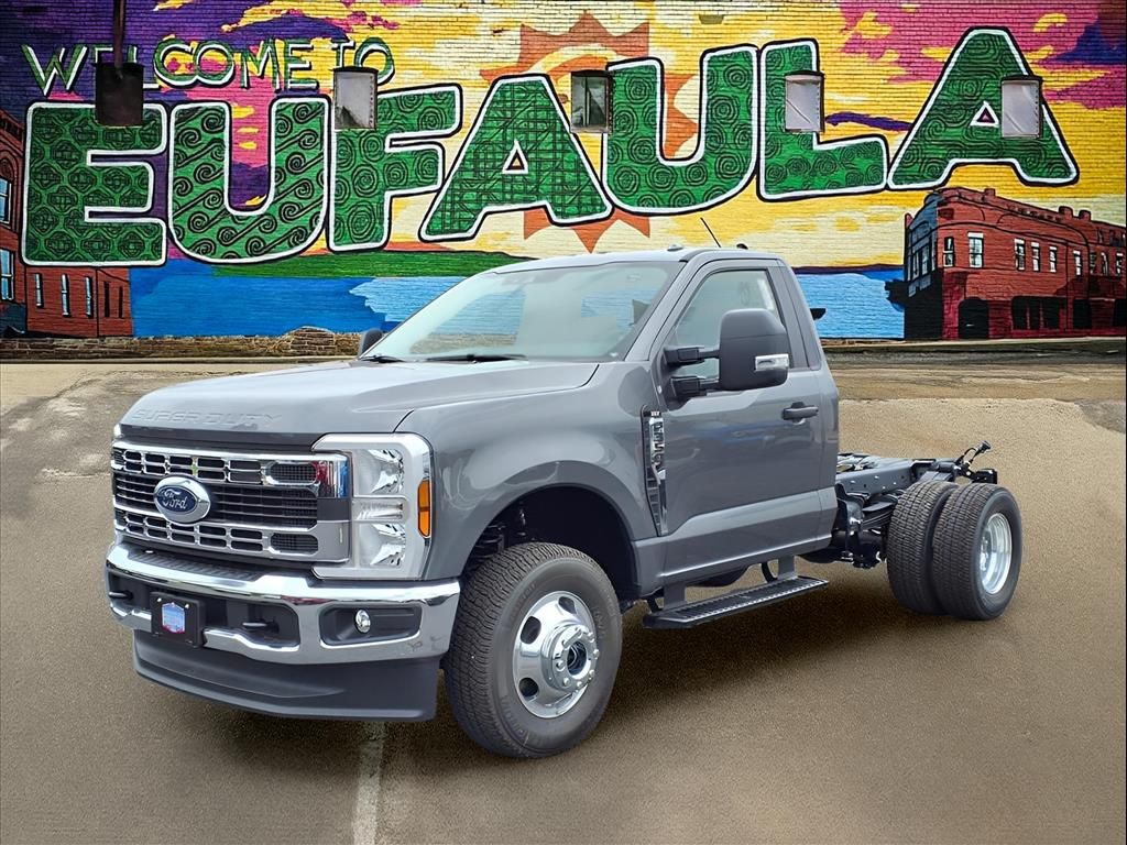 Gray Metallic 2026 Ford F-350SD XLT DRW 4WD 10-Speed Automatic 7.3L V8 PFI OHV 16V Federal 335hp 4WD. Medium Dark Slate, cloth 40/20/40 split bench seat. Engine: 7.3L 2V DEVCT NA PFI V8 Gas. Carbonized Gray Metallic.