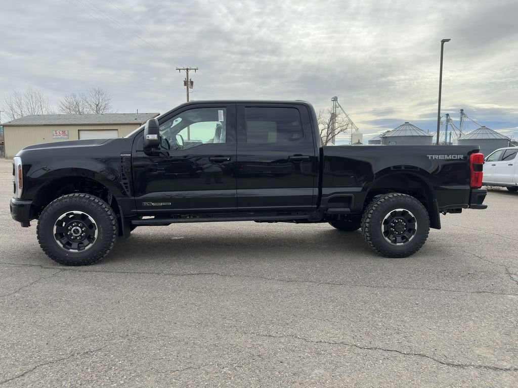 The 2026 Ford Super Duty F-350 Platinum SRW 4x4 Crew Cab is a premium heavy-duty diesel built for serious power, advanced technology, and upscale comfort. Finished in Agate Black with a Black Onyx Blue leather interior, it’s powered by the formidable 6.7L Power Stroke V8 Turbo Diesel paired with a 10-speed TorqShift automatic transmission and a 3.55 electronic-locking axle, delivering exceptional towing and hauling capability. This truck is equipped with the Tremor Off-Road Package, adding 35-inch all-terrain tires, skid plates, 18-inch machined aluminum wheels, and upgraded suspension components for enhanced off-road performance. Luxury and innovation are front and center with a 12-inch digital cluster, SYNC 4 with a 12-inch touchscreen, head-up display, B&O Unleashed premium sound system, 360-degree camera, Ford Co-Pilot360 Assist 2.0, adaptive cruise control, onboard scales with Smart Hitch, wireless charging, rain-sensing wipers, and a power sliding rear window. Comfort features include dual-zone electronic climate control, heated leather-wrapped steering wheel, power-adjustable pedals with memory, and power front seats. Exterior highlights include LED projector headlamps, LED fog lamps and taillamps, power tailgate with step, PowerScope trailer tow mirrors, roof clearance lights, twin-panel power moonroof, spray-in bedliner, wheel well liners, splash guards, and a hard rolling tonneau cover. This F-350 Platinum blends luxury refinement with uncompromising Super Duty capability.