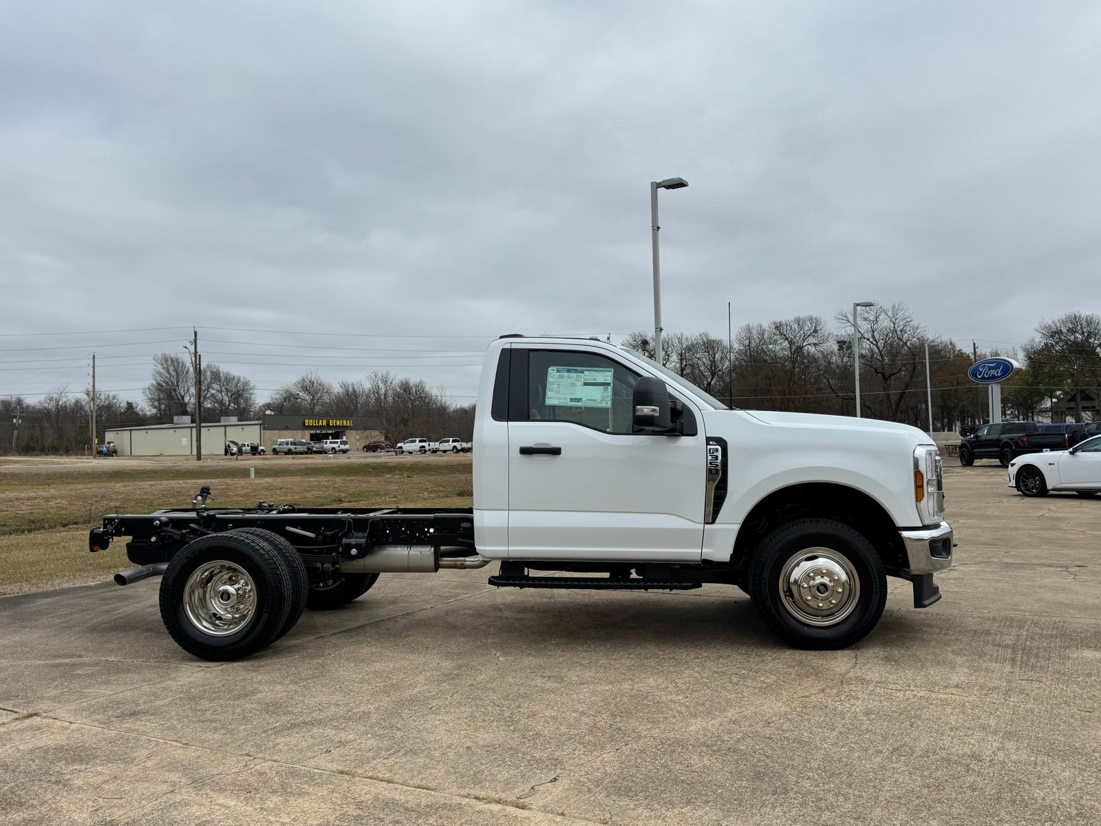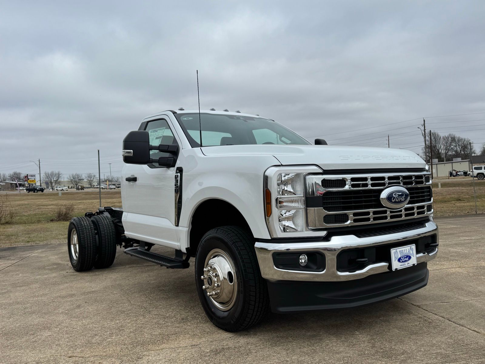 Oxford White 2026 Ford F-350SD XL DRW 4WD 10-Speed Automatic 7.3L V8 PFI OHV 16V Federal 335hp 4WD. Let the team at Ed Wallace Ford introduce you to an entirely new kind of car-buying experience. This 2026 Ford F-350SD XL DRW in Oxford White comes with the following features: 7.3L V8 PFI OHV 16V Federal 335hp 10-Speed Automatic 4WD Ford Connectivity Package (1-Year Included), Internet access capable: 5G Modem - Ford Connectivity Package, XL Chrome Package (Bright Grille, Chrome Front Bumper, Halogen Fog Lamps, and Remote Start), 4WD, 17" Argent Painted Steel Wheels, 190 Amp Alternator, 3.73 Axle Ratio, 4 Speakers, 4-Ton Hydraulic Jack, 4-Wheel Disc Brakes, ABS brakes, Air Conditioning, AM/FM radio, Brake assist, Compass, Delay-off headlights, Dual front impact airbags, Dual front side impact airbags, Dual rear wheels, Emergency communication system: SYNC 4 911 Assist, Front anti-roll bar, Front Center Armrest w/Storage, Front License Plate Bracket, Front reading lights, Fully automatic headlights, HD Vinyl 40/20/40 Split Bench Seat, Heated door mirrors, Illuminated entry, Low tire pressure warning, Outside temperature display, Overhead airbag, Overhead console, Panic alarm, Passenger cancellable airbag, Passenger vanity mirror, Platform Running Boards, Power door mirrors, Power steering, Power windows, Rear anti-roll bar, Remote keyless entry, Security system, Speed control, Steering wheel mounted audio controls, Tachometer, Telescoping steering wheel, Tilt steering wheel, Traction control, Trailer Brake Controller, Trip computer, Turn signal indicator mirrors, and Variably intermittent wipers.