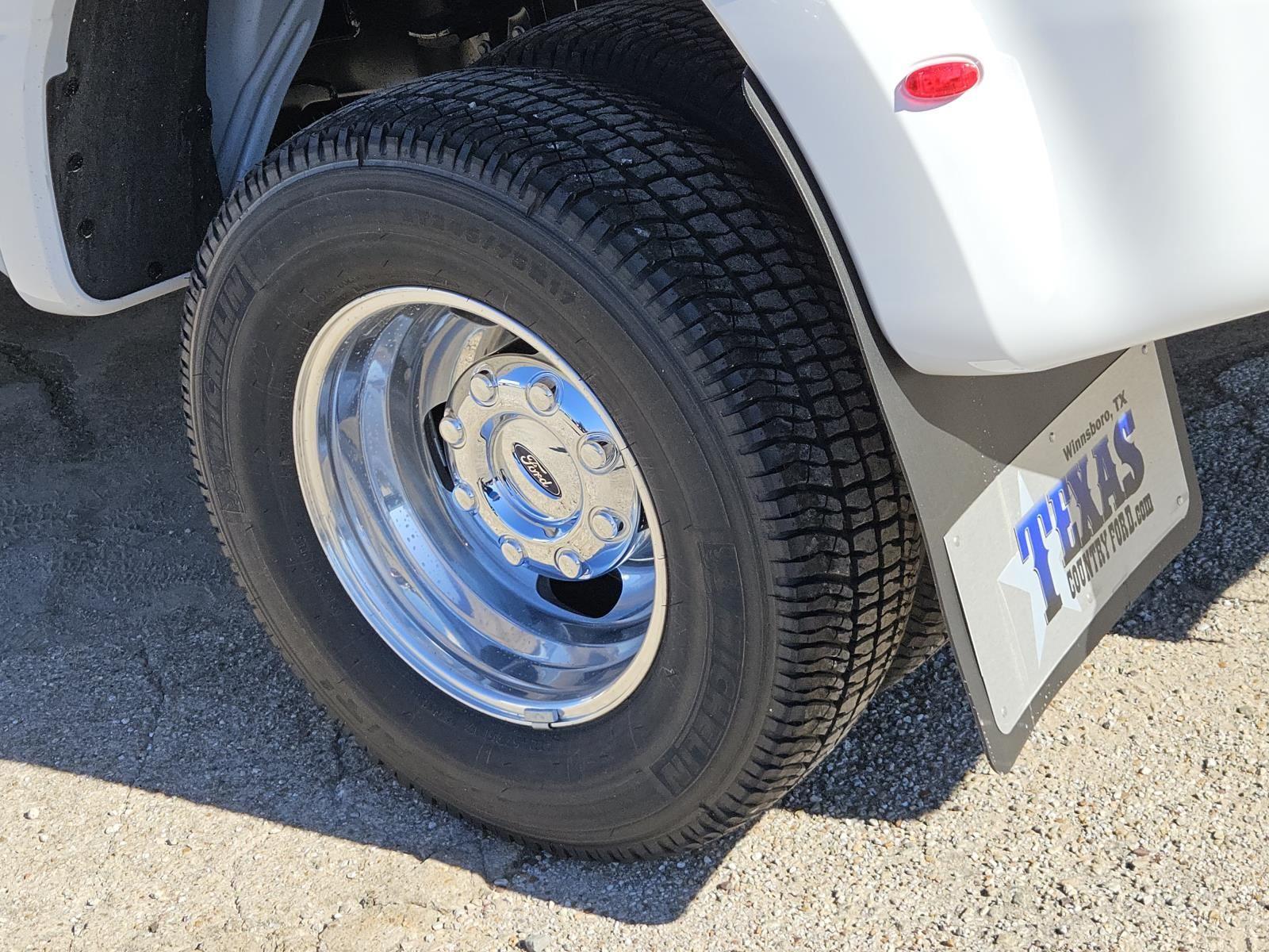 - 17 x 6.5-inch front and dual rear polished forged aluminum wheels