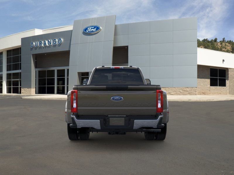 This 2026 Ford Super Duty F-450 XLT DRW features a powerful V8 Turbo Diesel engine, a regular crew cab body style, and a rugged FWD drivetrain. The vehicle features a spacious interior with Baja and a range of advanced technology and safety features. The exterior is Marsh Gray, complemented by Baja accents. This Super Duty is designed for both heavy-duty work and comfort, offering a smooth ride and modern connectivity.