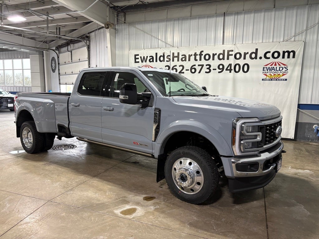 The 2026 Ford F-450SD Lariat DRW is a new, in-stock vehicle at Ewald's Hartford Ford. It features a 6.7L High Output Power Stroke V8 Diesel engine, a 10-speed automatic transmission, and a range of premium amenities and safety features. Please reference the window sticker for more information on final vehicle configuration.