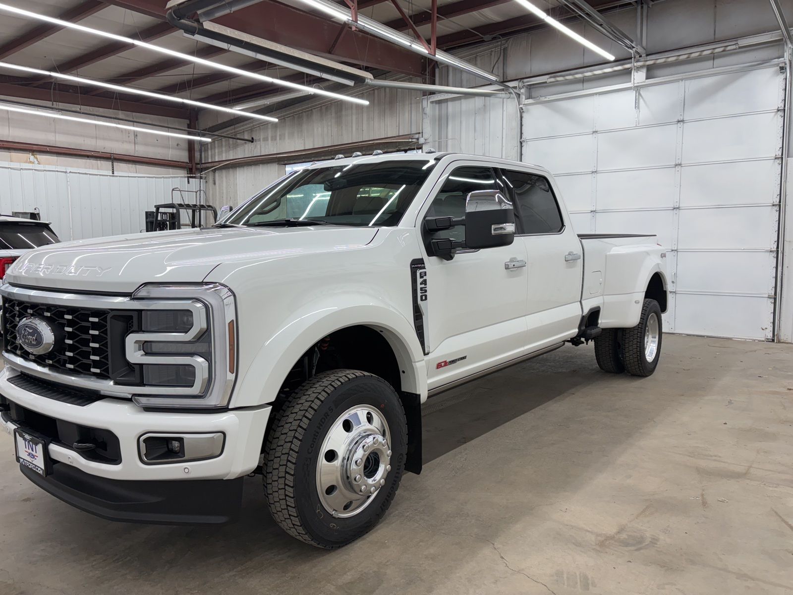 Star White Metallic Tri-Coat 2026 Ford F-450SD Platinum Platinum Plus Package 4WD 10-Speed Automatic 6.7L High Output Power Stroke V8 Diesel 4WD, 19.5" Forged Polished Aluminum Wheels, ABS brakes, Alloy wheels, Compass, Electronic Stability Control, Flow-Through Console, GVWR: 14,000 Lb Payload Package, Heated door mirrors, Illuminated entry, Illuminated Scuff Plates, Internet access capable: 5G Modem - Ford Connectivity Package, Limited Slip with 4.30 Axle Ratio, Low tire pressure warning, Order Code 773A, Platinum Plus Package, Premium Leather Instrument Panel Topper, Premium Luxury Leather-Wrapped Steering Wheel, Premium Venetian Leather Door Panel, Pro Power Onboard - 2kW, Radio: B&O Unleashed Sound System by Bang & Olufsen, Remote keyless entry, Satin Chrome Door Handles, Traction control, Twin Panel Power Moonroof, Unique Platinum Leather 40/Console/40 Seats, Unique Platinum Plus Luxury Leather 40/Console/40 Seats, Unique Satin Finish Grille, Unique Split Center Console Armrest, Upfitter Switches (6).