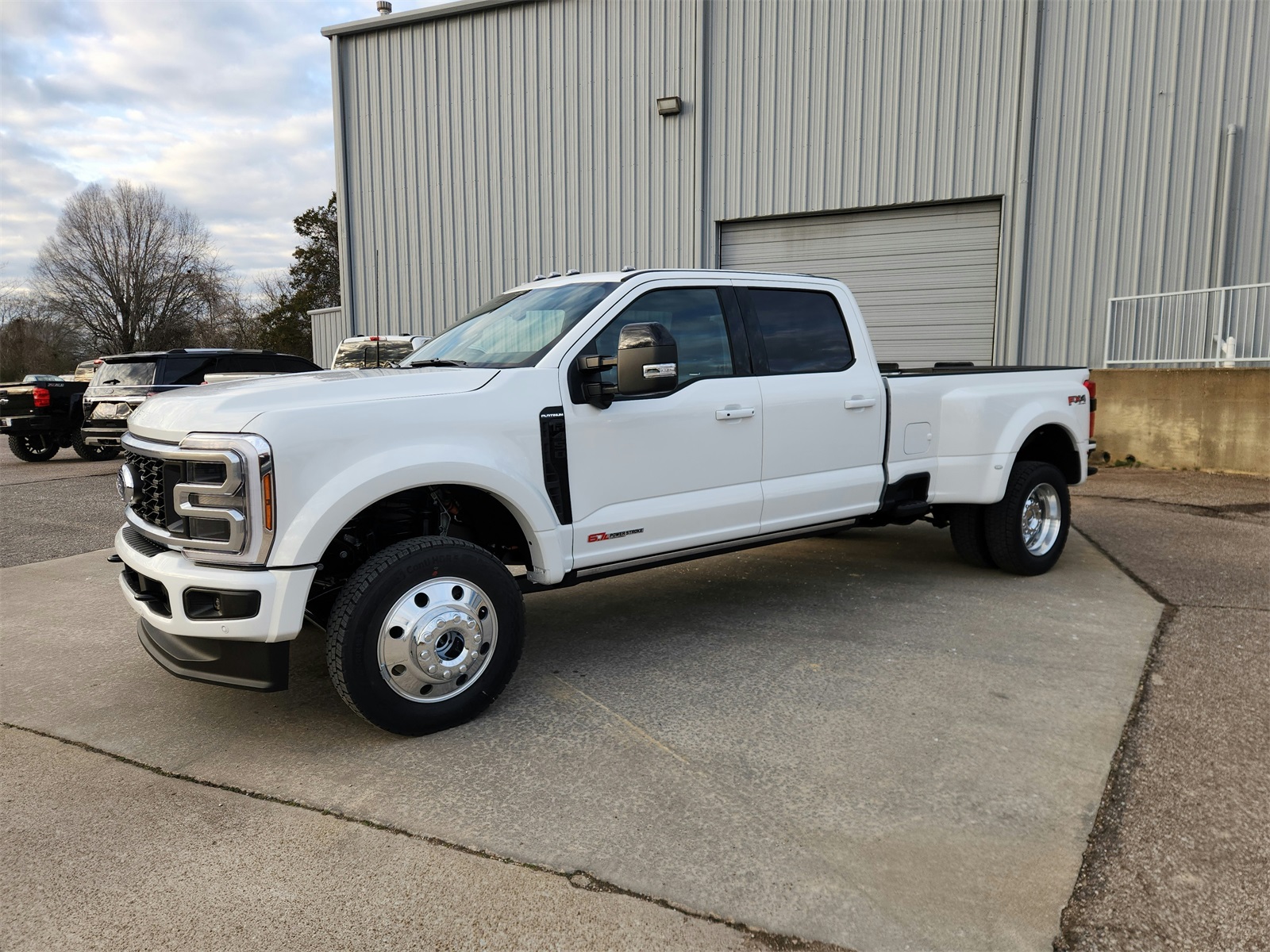 This 2026 Ford Super Duty Platinum 4x4 Crew Cab is in transit and features a Star White Metallic Tri-Coat exterior with a Black Onyx interior. The vehicle is equipped with an automatic transmission, Pro Power Onboard 400W, and a range of premium options and packages. Please contact the dealer for more information or to schedule a test drive.