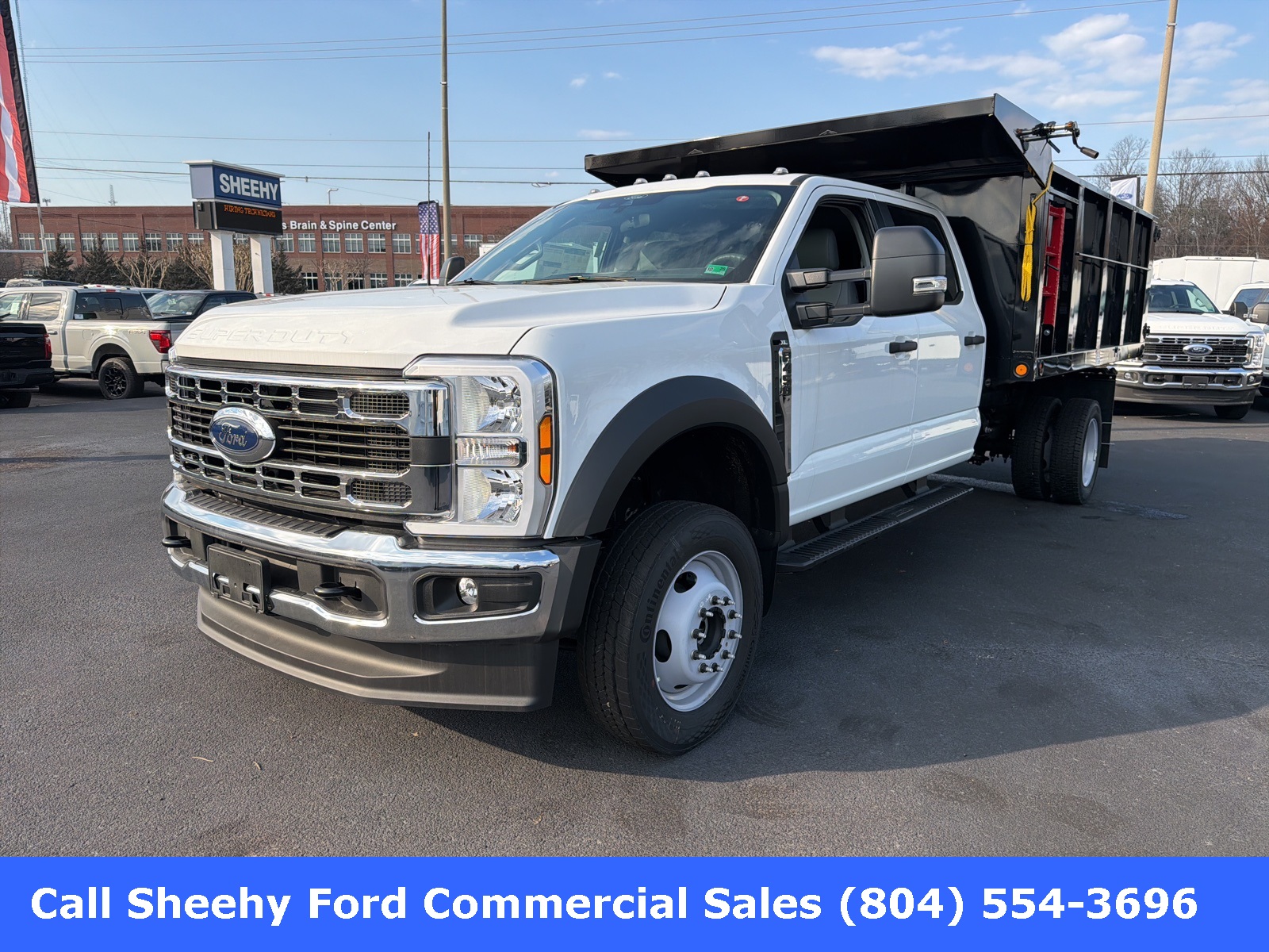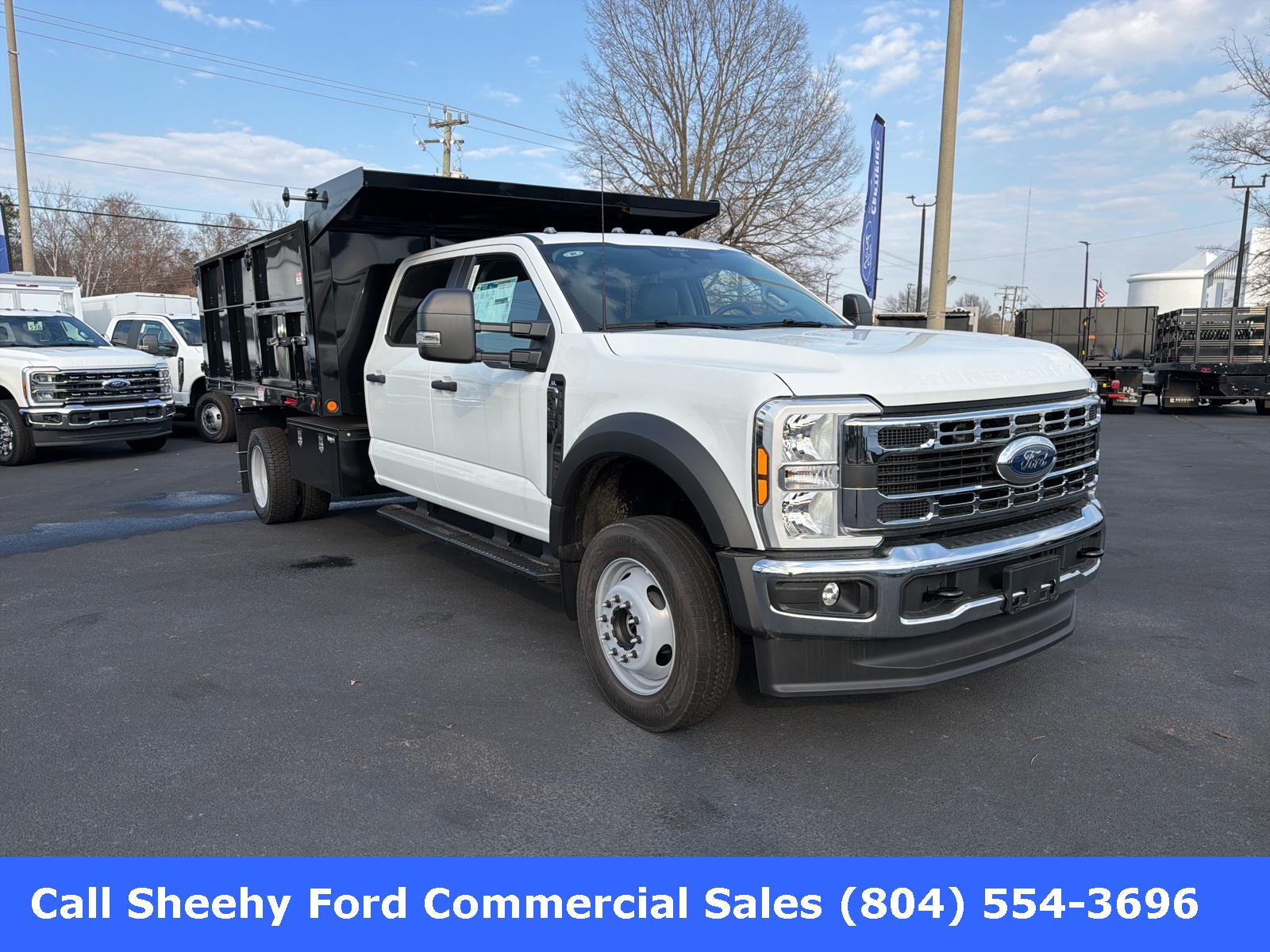 Job ready. 2026 Ford F-450 XL Crew Cab 4x4. 7.3L gas. Blue Ridge Canyon 12' steel landscape dump. 42 high sides. 4.88 limited slip rear axle. Platform running boards. Snow plow prep package. Trailer brake controller. XL chrome package. Contact Sheehy Ford of Richmond Commercial Sales for more information!