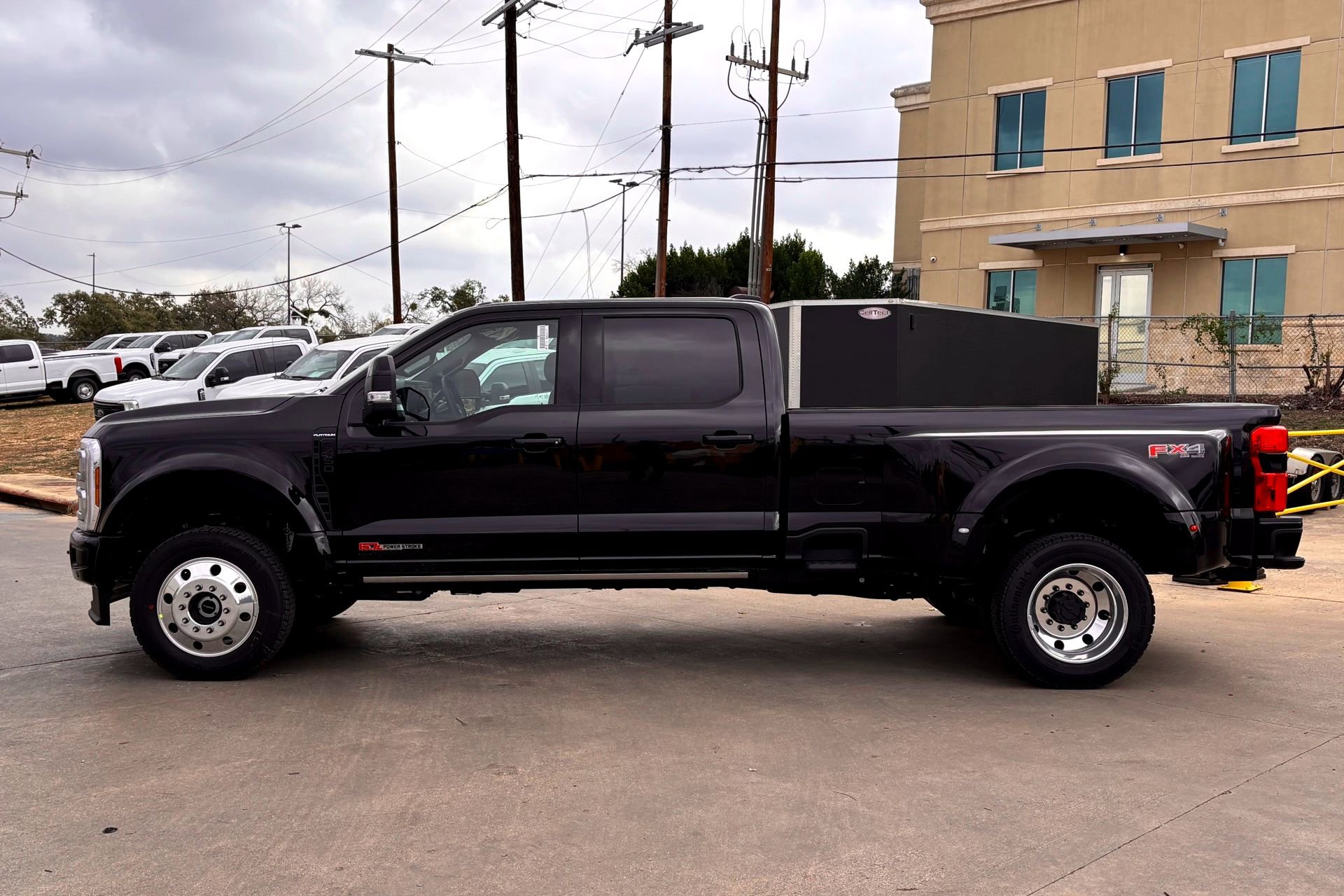 2026 Ford F-450SD 4WD Platinum Agate Black Metallic. 6.7L High Output Power Stroke V8 Diesel 10-Speed Automatic. 4WD, ABS brakes, Air Conditioning, Alloy wheels, Compass, Dual rear wheels, Electronic Stability Control, Heated door mirrors, Illuminated entry, Limited Slip w/4.30 Axle Ratio, Low tire pressure warning, Order Code 773A, Power steering, Power windows, Radio: B&O Unleashed Sound System by Bang & Olufsen, Remote keyless entry, Tough Bed Spray-In Bedliner, Traction control. This vehicle is located at Northside Ford. We're centrally located in the heart of San Antonio off Hwy 281 and Nakoma, just north of the airport.
