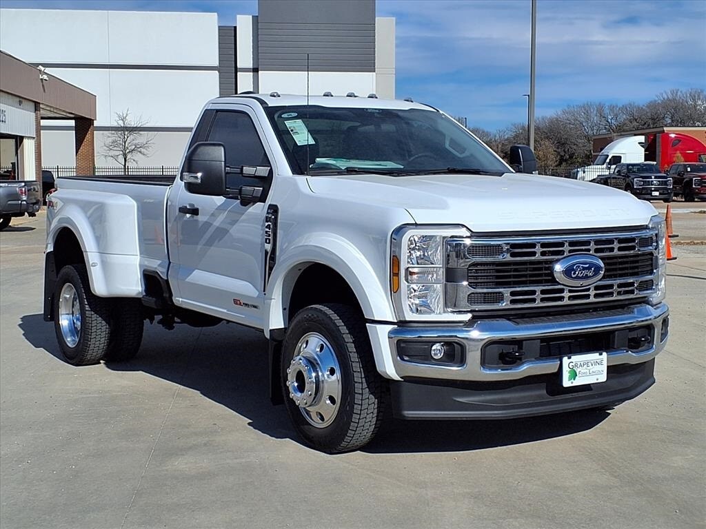 Recent Arrival! 2026 Ford F-450SD XLT DRW Oxford White 4WD 19.5" Forged Polished Aluminum Wheels, 360-Degree Camera, 360-Degree Camera Package, 4 Speakers, 4-Wheel Disc Brakes, ABS brakes, Air Conditioning, BLIS with Cross-Traffic Alert, Brake assist, Cloth 40/20/40 Split Bench Seat, Dual front impact airbags, Dual front side impact airbags, Electronic Stability Control, Emergency communication system: SYNC 4 911 Assist, Ford Connectivity Package (1-Year Included), Front anti-roll bar, FX4 Off-Road Package, GVWR: 14,000 Lb Payload Package, Hill Descent Control, Internet access capable: 5G Modem - Ford Connectivity Package, LED Center High-Mounted Stop Lamp (CHMSL) Camera, Limited Slip with 4.30 Axle Ratio, Low tire pressure warning, Off-Road Specifically Tuned Shock Absorbers, Order Code 673A, Overhead airbag, Passenger cancellable airbag, Power driver seat, Power steering, Power windows, Radio: AM/FM Stereo with MP3 Player, Rear anti-roll bar, Rear Parking Sensors, Remote keyless entry, Steering wheel mounted audio controls, SYNC 4, Traction control, Unique FX4 Off-Road Box Decal. 6.7L High Output Power Stroke V8 Diesel 10-Speed Automatic Grapevine Ford Lincoln proudly serving the following communities. Grapevine, Southlake, Flower Mound, Coppell, Colleyville, Dallas, Ft Worth, Lewisville, Keller, Carrollton, The Colony, Frisco, Plano, Euless. We also serve customers in Argyle, Denton, Trophy Club, Northlake, Little Elm, Sanger, Murphy, Mesquite, DeSoto, Addison, Farmers Branch, University Park, Highland Park, Duncanville, Princeton, Prosper, Allen, Celina, and Farmersville. Some other cities include Fairview, Garland, Lucas, Irving, and Keller. We're right by DFW AIRPORT! Price includes: $2500 - Retail Customer Cash.