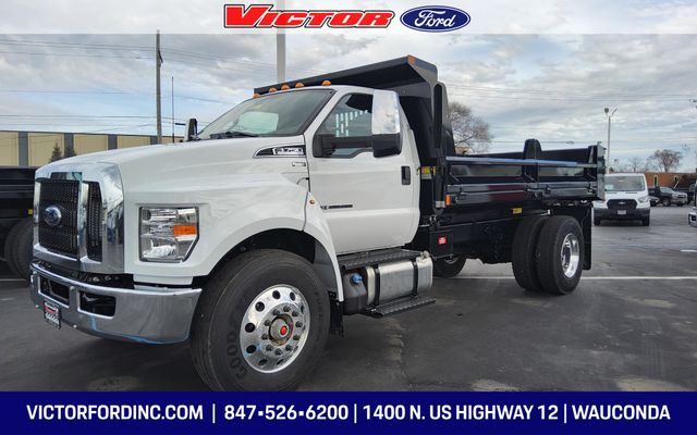 Oxford White 2026 Ford F-750SD Base RWD 10-Speed Automatic V8. MONROE 14' CRYSTEEL CONTRACTOR SD DUMP BODY, SPLIT-FOLD SIDES BODY:14'L,87"ID,96"OD. Price includes dealer added accessories.