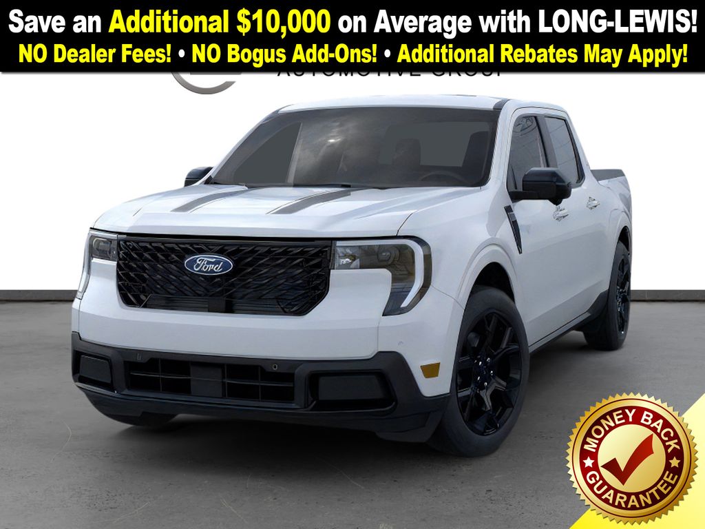 Dealer Discount of $1,078 off MSRP Space White Metallic 2026 Ford Maverick Lariat NFT AWD 8-Speed Automatic EcoBoost 2.0L I4 GTDi DOHC Turbocharged VCT 2.91 Axle Ratio, 4-Wheel Disc Brakes, 4K Tow Package, 8 Speakers, ABS brakes, ActiveX Trimmed Heated Front Bucket Seats, Air Conditioning, Alloy wheels, AM/FM radio: SiriusXM with 360L, Apple CarPlay/Android Auto, Auto High-beam Headlights, Automatic temperature control, Black Appearance Package, Black Grille, Black Interior Accents, Brake assist, Bumpers: body-color, Compass, Delay-off headlights, Driver door bin, Driver vanity mirror, Dual front impact airbags, Dual front side impact airbags, Electronic Stability Control, Emergency communication system: SYNC 4 911 Assist, Exterior Parking Camera Rear, Ford Connectivity Package (1-Year Included), Four wheel independent suspension, Front anti-roll bar, Front Bucket Seats, Front Center Armrest, Front dual zone A/C, Front reading lights, Fully automatic headlights, Heated door mirrors, Heated front seats, Heated steering wheel, Illuminated entry, Internet access capable: 5G Modem - Ford Connectivity Package, Knee airbag, Low tire pressure warning, Navigation system: Connected Navigation, Occupant sensing airbag, Outside temperature display, Overhead airbag, Overhead console, Panic alarm, Passenger door bin, Passenger vanity mirror, Power door mirrors, Power driver seat, Power steering, Power windows, Radio data system, Radio: B&O Sound System by Bang and Olufsen, Rear anti-roll bar, Rear seat center armrest, Rear step bumper, Remote keyless entry, Security system, SiriusXM with 360L, Speed control, Speed-sensing steering, Steering wheel mounted audio controls, SYNC 4 with Enhanced Voice Recognition, Telescoping steering wheel, Tilt steering wheel, Traction control, Trailer Brake Controller, Trailer Hitch (class III) 2" Receiver.