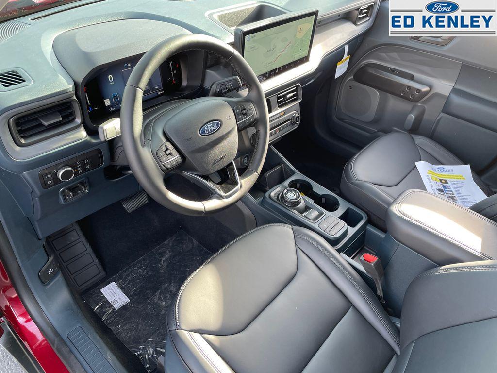 The 2026 Ford Maverick Lariat is a new hybrid pickup with a polished red exterior and racy lines. It features a comfortable and well-designed interior with ample storage, a strong hybrid engine, and great handling. The vehicle offers luxury with heated seats, a leatherette front seat, and a heated steering wheel. It is equipped with Apple CarPlay and Android Auto for seamless smartphone integration, and all wheel drive for confidence on the road. This small pickup is designed for both work and everyday life without breaking the bank.