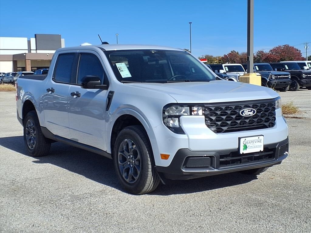 2026 Ford Maverick XLT White Metallic FWD 4-Wheel Disc Brakes, 6 Speakers, ABS brakes, Air Conditioning, Auto High Beams, Automatic temperature control, BLIS with Cross-Traffic Alert and Trailer Coverage, Dual front impact airbags, Dual front side impact airbags, Emergency communication system: SYNC 4 911 Assist, Equipment Group 300A, Exit Warning, Ford Co-Pilot360, Ford Connectivity Package (1-Year Included), Front anti-roll bar, Front wheel independent suspension, Heated Mirror with Painted Black Skull Caps, Heated Seats, Internet access capable: 5G Modem - Ford Connectivity Package, Intersection Assist, Knee airbag, Lane-Keeping System, LED Box Lighting, Low tire pressure warning, Occupant sensing airbag, Overhead airbag, Power Glass Manual-Folding Mirrors, Power steering, Power windows, Pre-Collision Assist with Automatic Emergency Braking, Pro Power Onboard - 400W, Radio data system, Radio: AM/FM Stereo with 6 Speakers with 6 Speakers, Rear Parking Sensors and Rear Parking Sensors are not included in this response. EcoBoost 2.0L I4 GTDi DOHC Turbocharged VCT 8-Speed Automatic Grapevine Ford Lincoln proudly serving the following communities. Grapevine, Southlake, Flower Mound, Coppell, Colleyville, Dallas, Ft Worth, Lewisville, Keller, Carrollton, The Colony, Frisco, Plano, Euless. We also serve customers in Argyle, Denton, Trophy Club, Northlake, Little Elm, Sanger, Murphy, Mesquite, DeSoto, Addison, Farmers Branch, University Park, Highland Park, Duncanville, Princeton, Prosper, Allen, Celina, and Farmersville. Some other cities include Fairview, Garland, Lucas, Irving, and Keller. We're right by DFW AIRPORT!